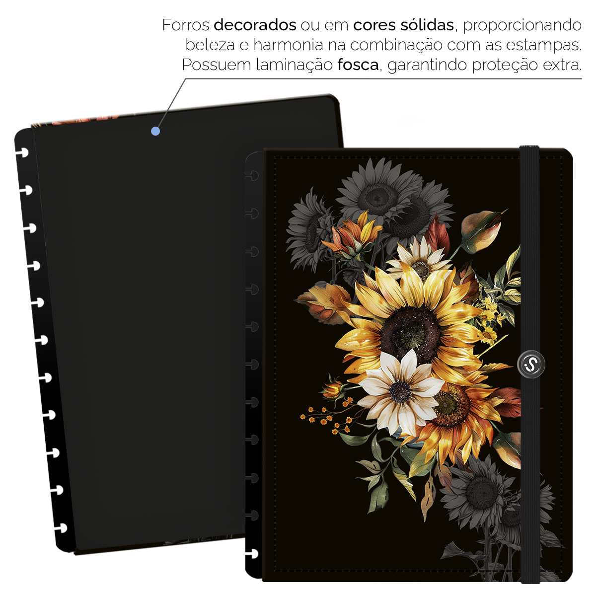 - Forros decorados ou em cores sólidas, com laminação fosca, garantem proteção extra.