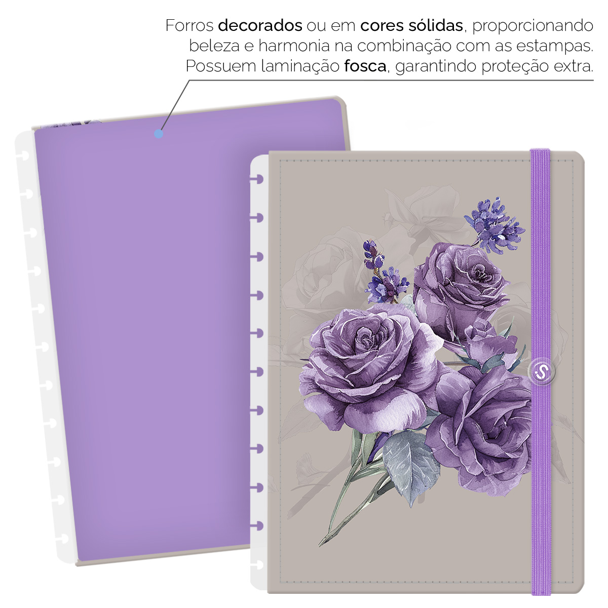 - Forros decorados ou em cores sólidas, com laminação fosca, garantem proteção extra.