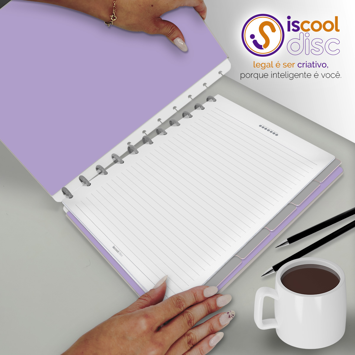 Com furos no formato de "cogumelo", é compatível com outros fabricantes de cadernos de disco, inclusive da marca Caderno Inteligente®.