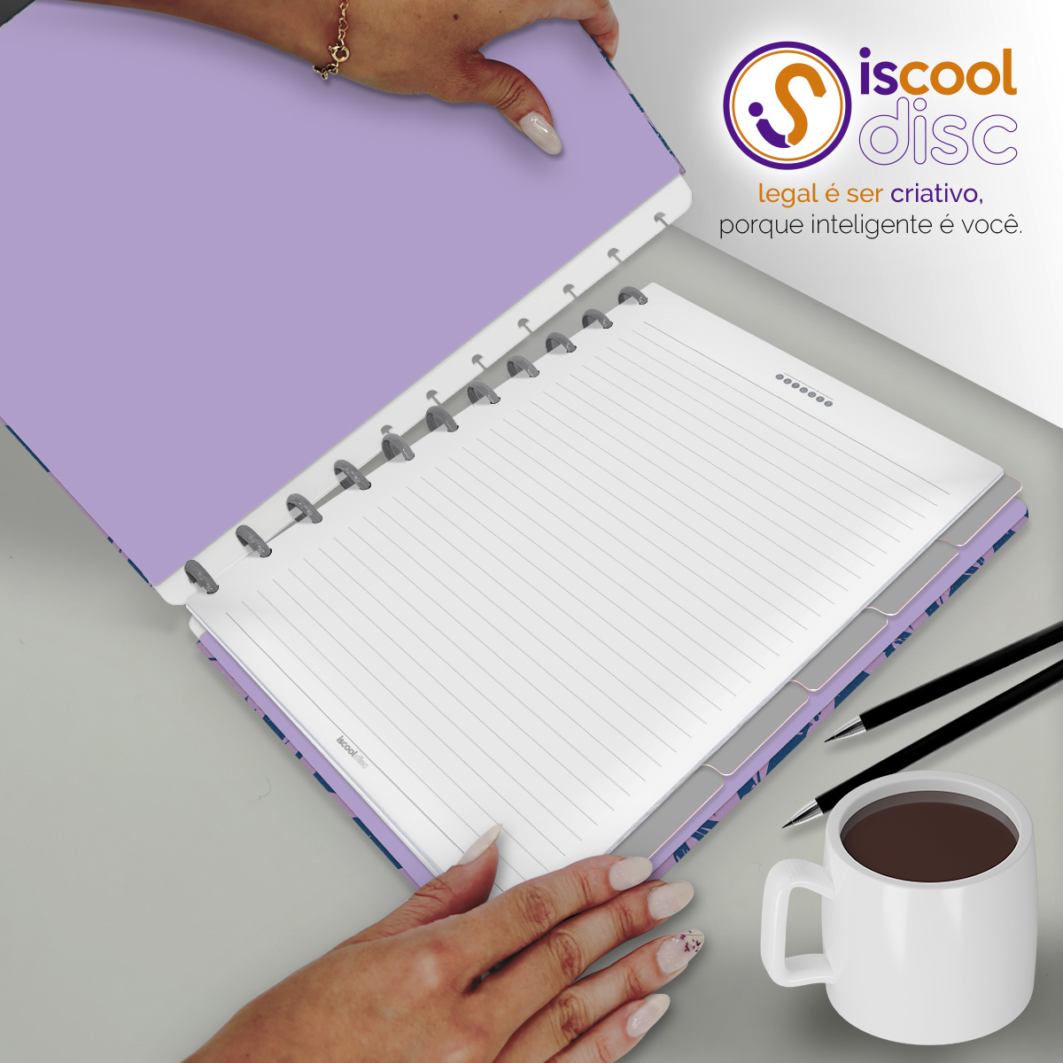 Com furos no formato de "cogumelo", é compatível com outros fabricantes de cadernos de disco, inclusive da marca Caderno Inteligente®.