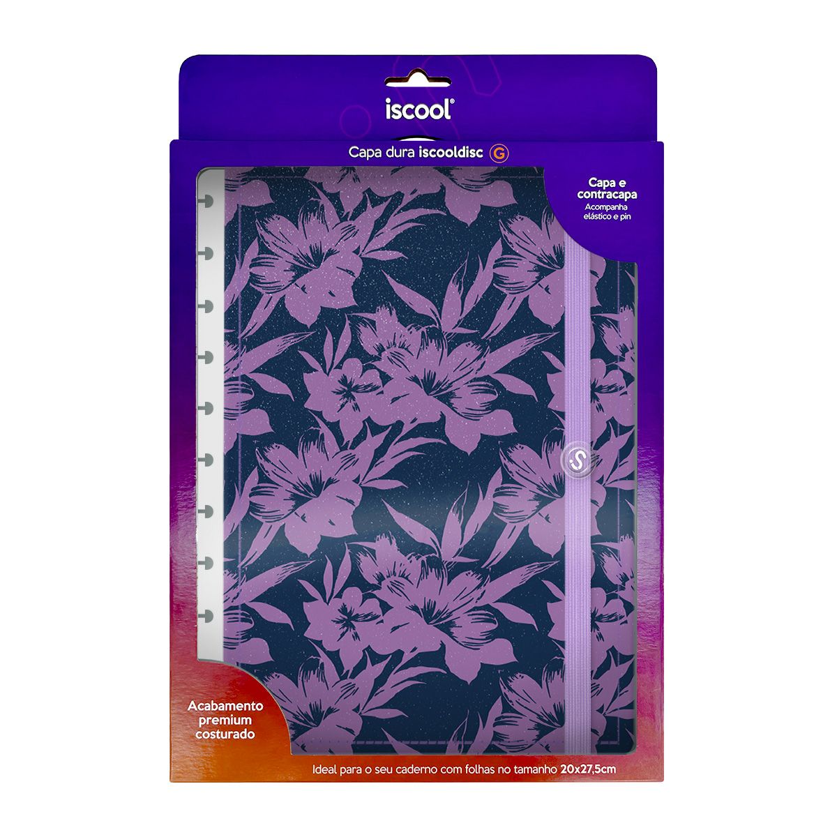 Com as capas iscool Prime, você pode renovar a “cara” do seu caderno de disco sempre que desejar! A caixa inclui capa e contracapa, além de extras que fazem toda a diferença: elástico para fechamento da capa, folha de dados e calendário.
