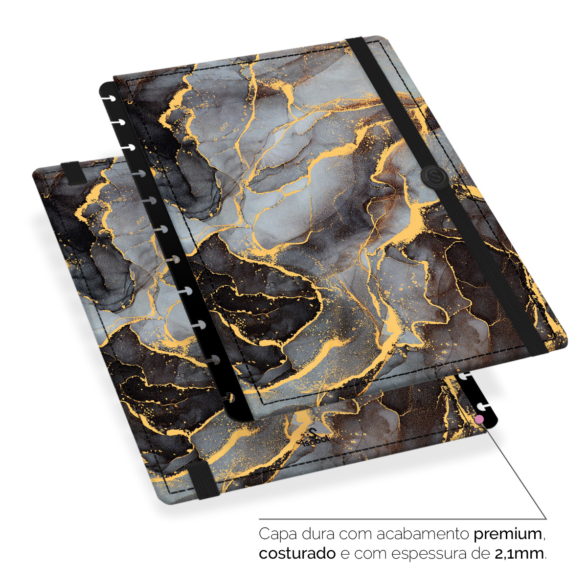 - Capa dura com acabamento premium, costurada e com espessura de 2,1 mm.