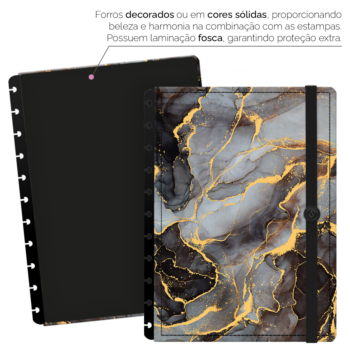 - Forros decorados ou em cores sólidas, com laminação fosca, garantem proteção extra.