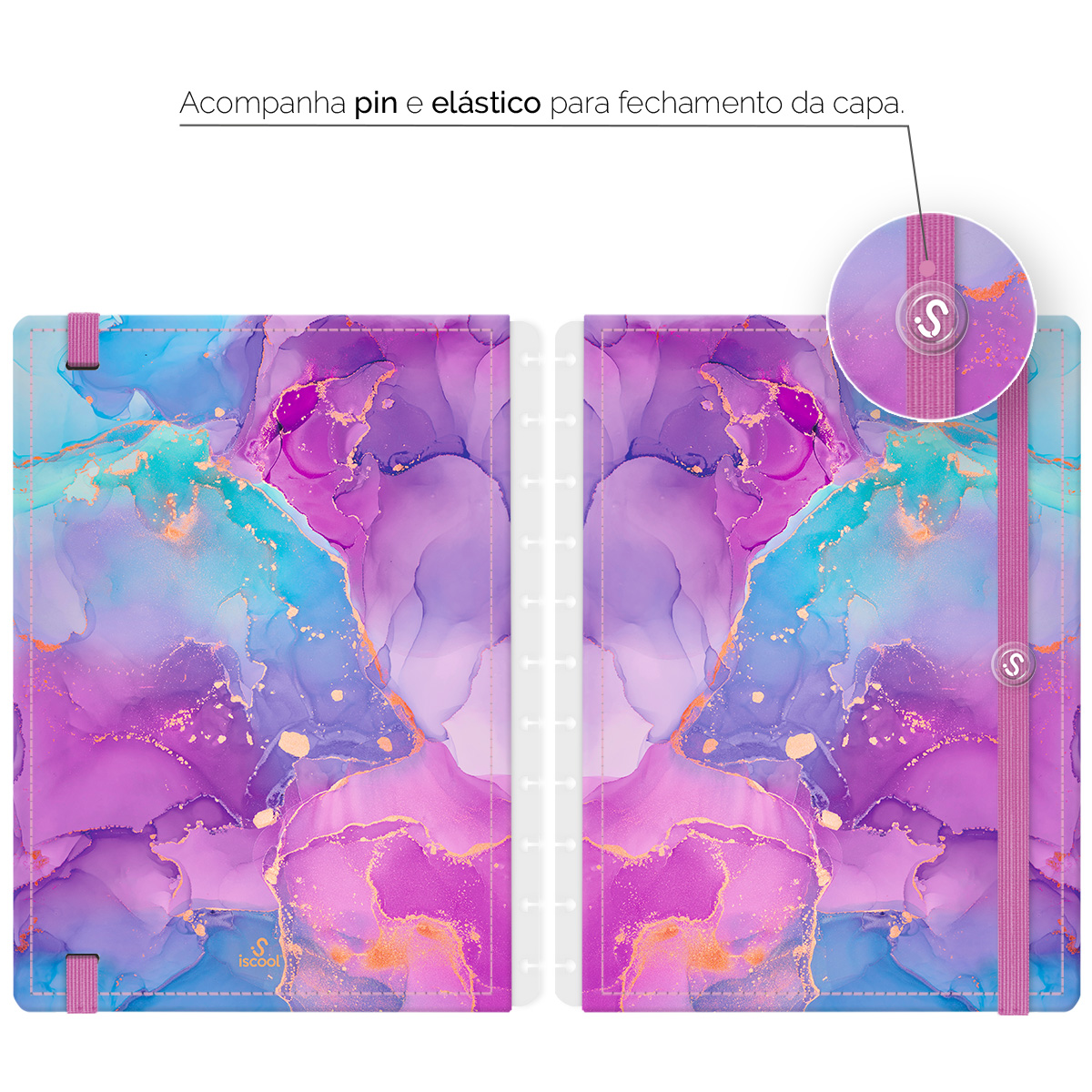 Com as capas iscool Prime, você pode renovar a “cara” do seu caderno de disco sempre que desejar! A caixa inclui capa e contracapa, além de extras que fazem toda a diferença: elástico para fechamento da capa, folha de dados e calendário.