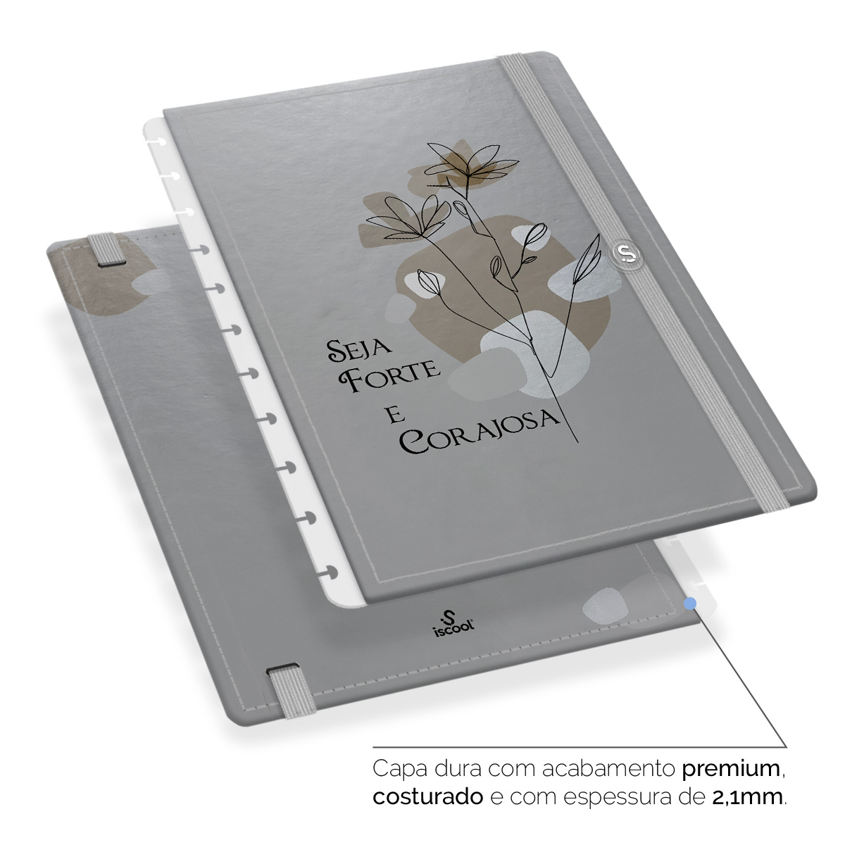 - Capa dura com acabamento premium, costurada e com espessura de 2,1 mm.