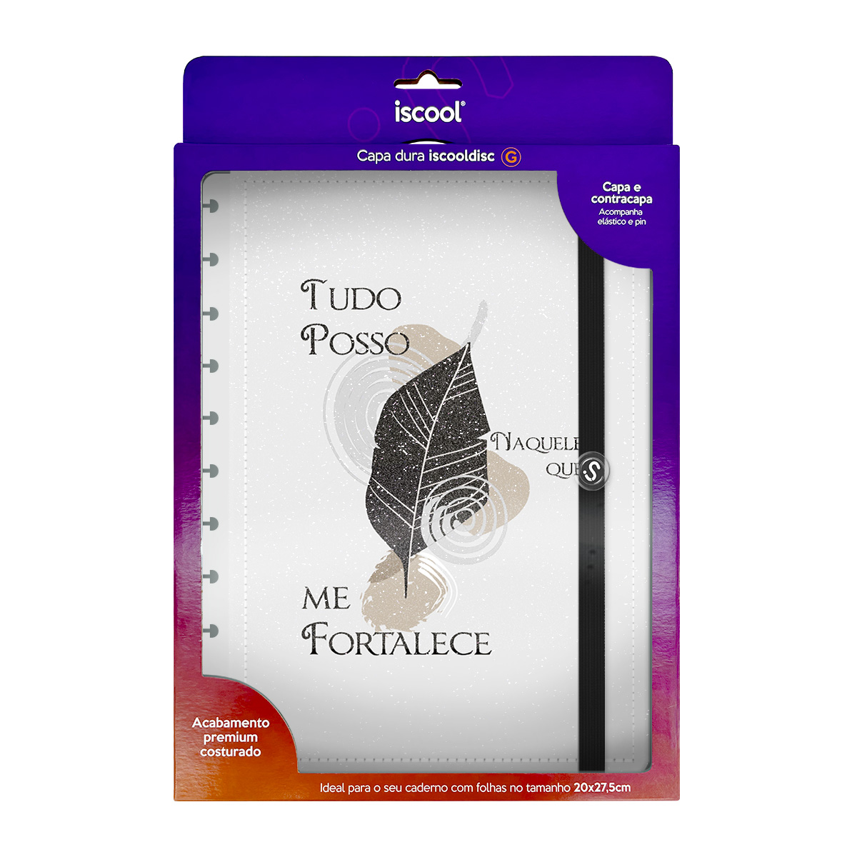 Com as capas iscool Prime, você pode renovar a “cara” do seu caderno de disco sempre que desejar! A caixa inclui capa e contracapa, além de extras que fazem toda a diferença: elástico para fechamento da capa, folha de dados e calendário.