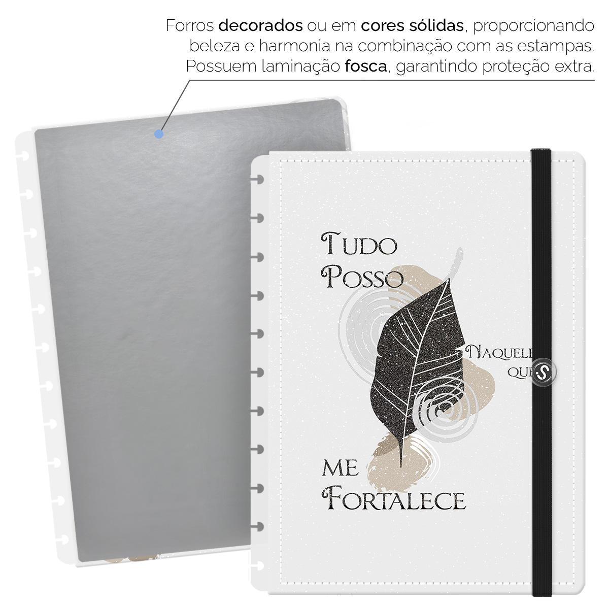 - Forros decorados ou em cores sólidas, com laminação fosca, garantem proteção extra.