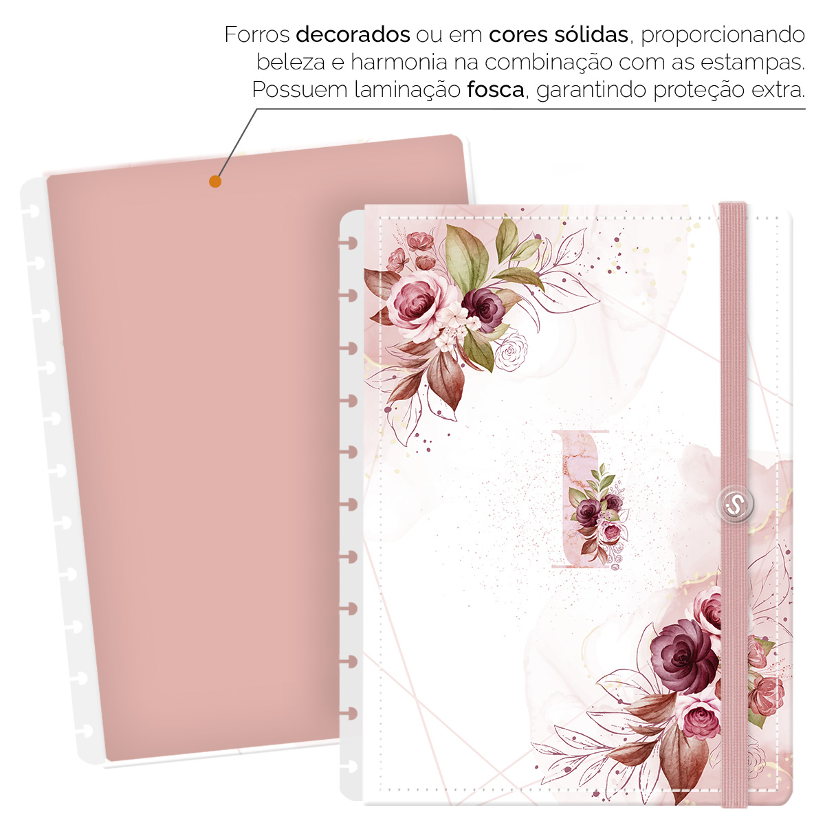 - Forros decorados ou em cores sólidas, com laminação fosca, garantem proteção extra.