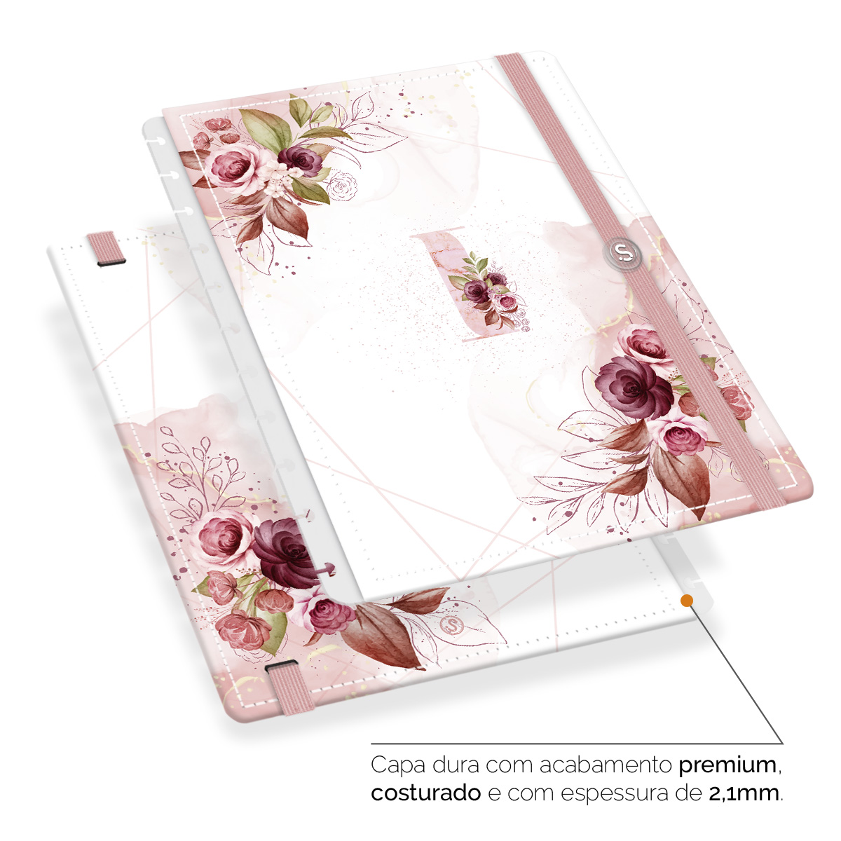 - Capa dura com acabamento premium, costurada e com espessura de 2,1 mm.