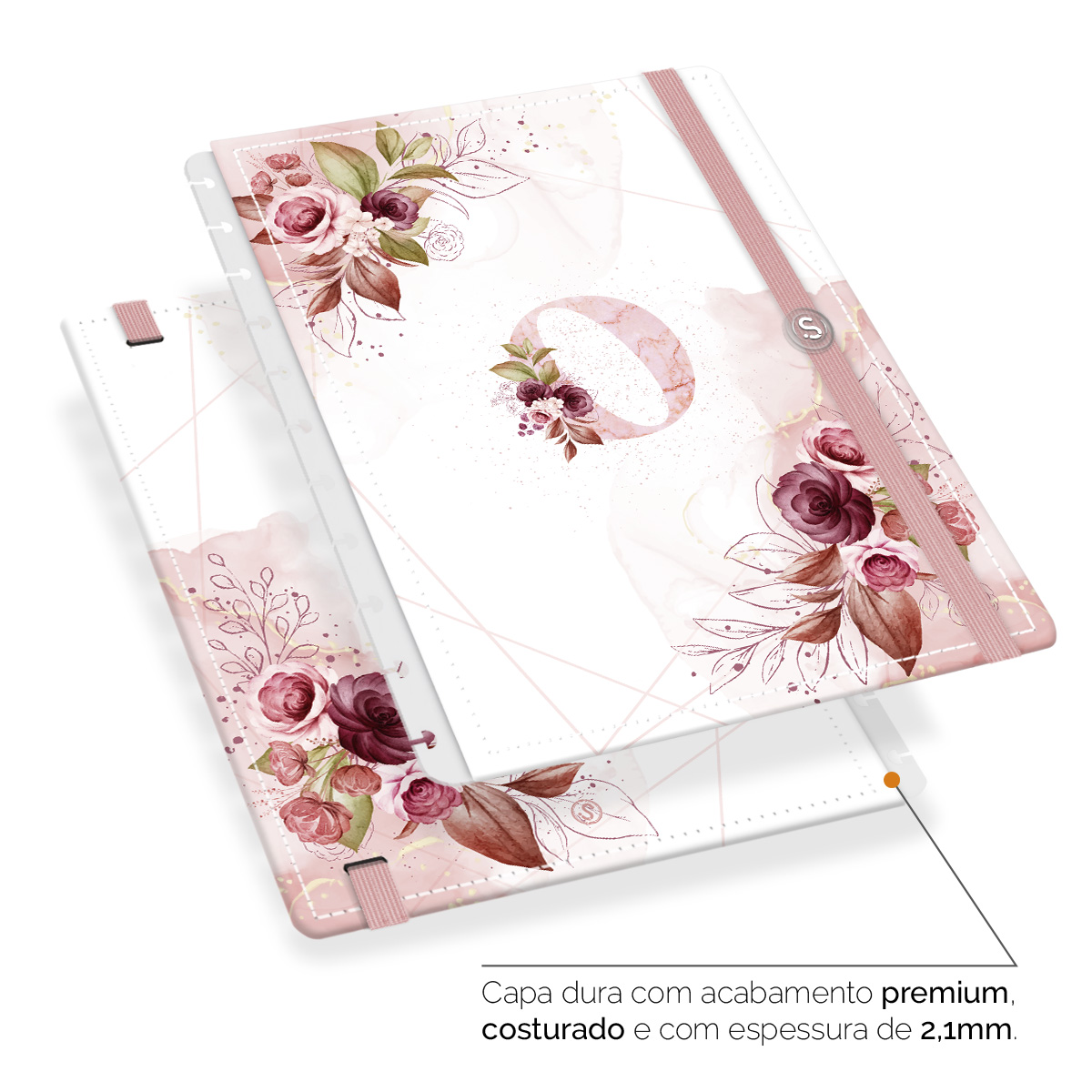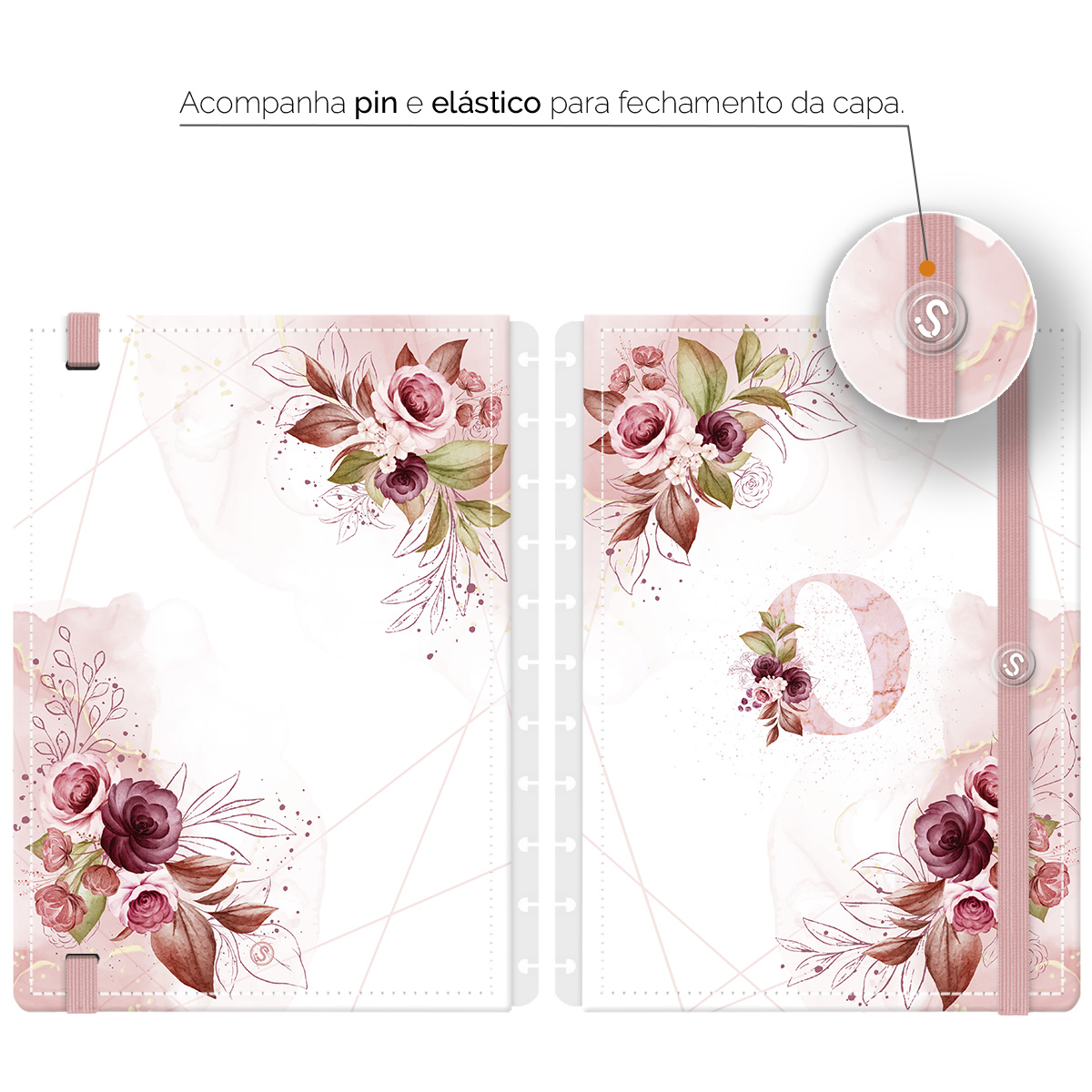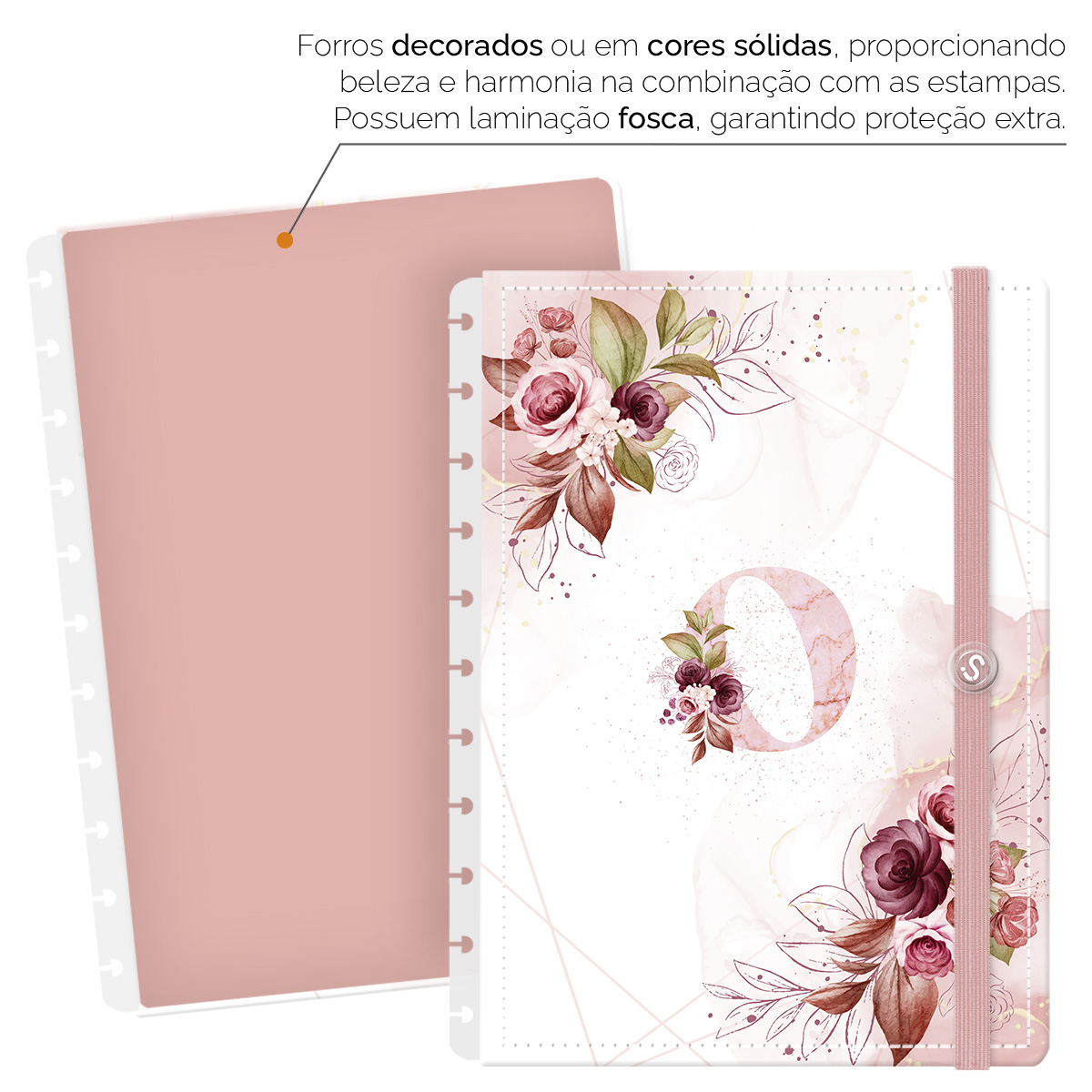 Capa e Contracapa Iscool Disc Monograma Floral Branco E Rosa Letra O