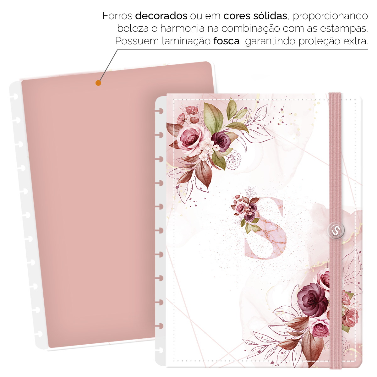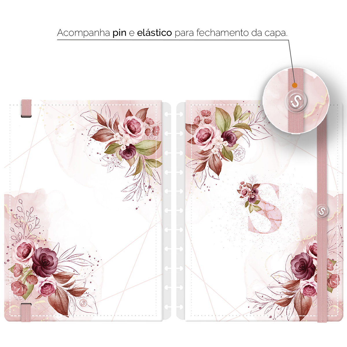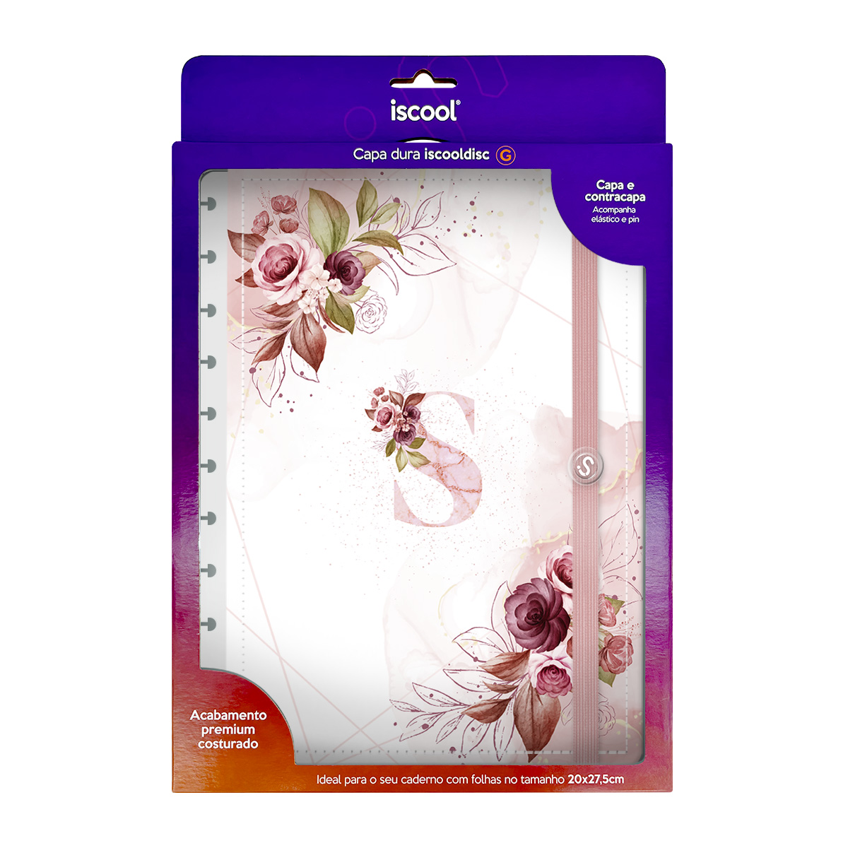 Capa e Contracapa Iscool Disc Monograma Floral Branco E Rosa Letra S