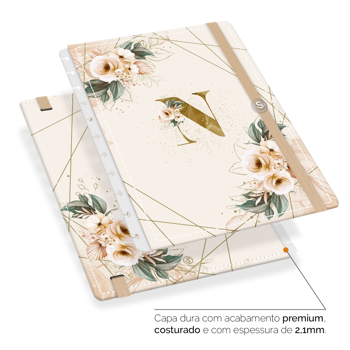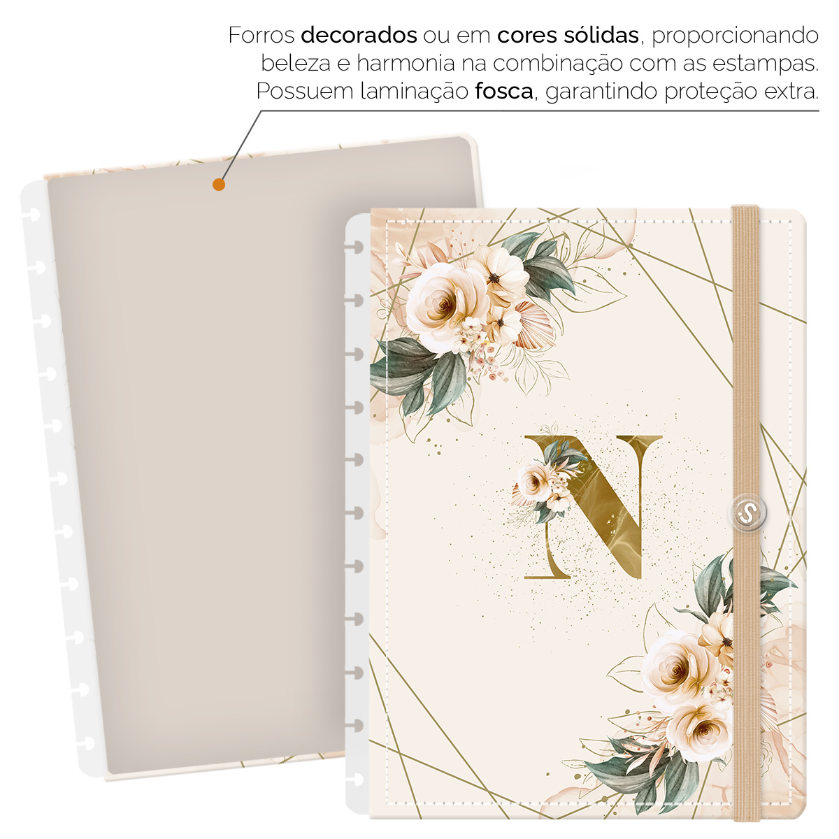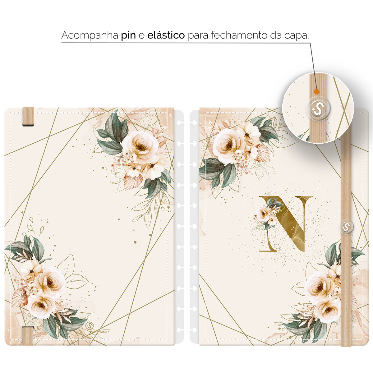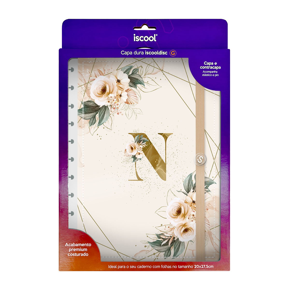 Capa e Contracapa Iscool Disc Monograma Floral Nude e Dourado Letra N
