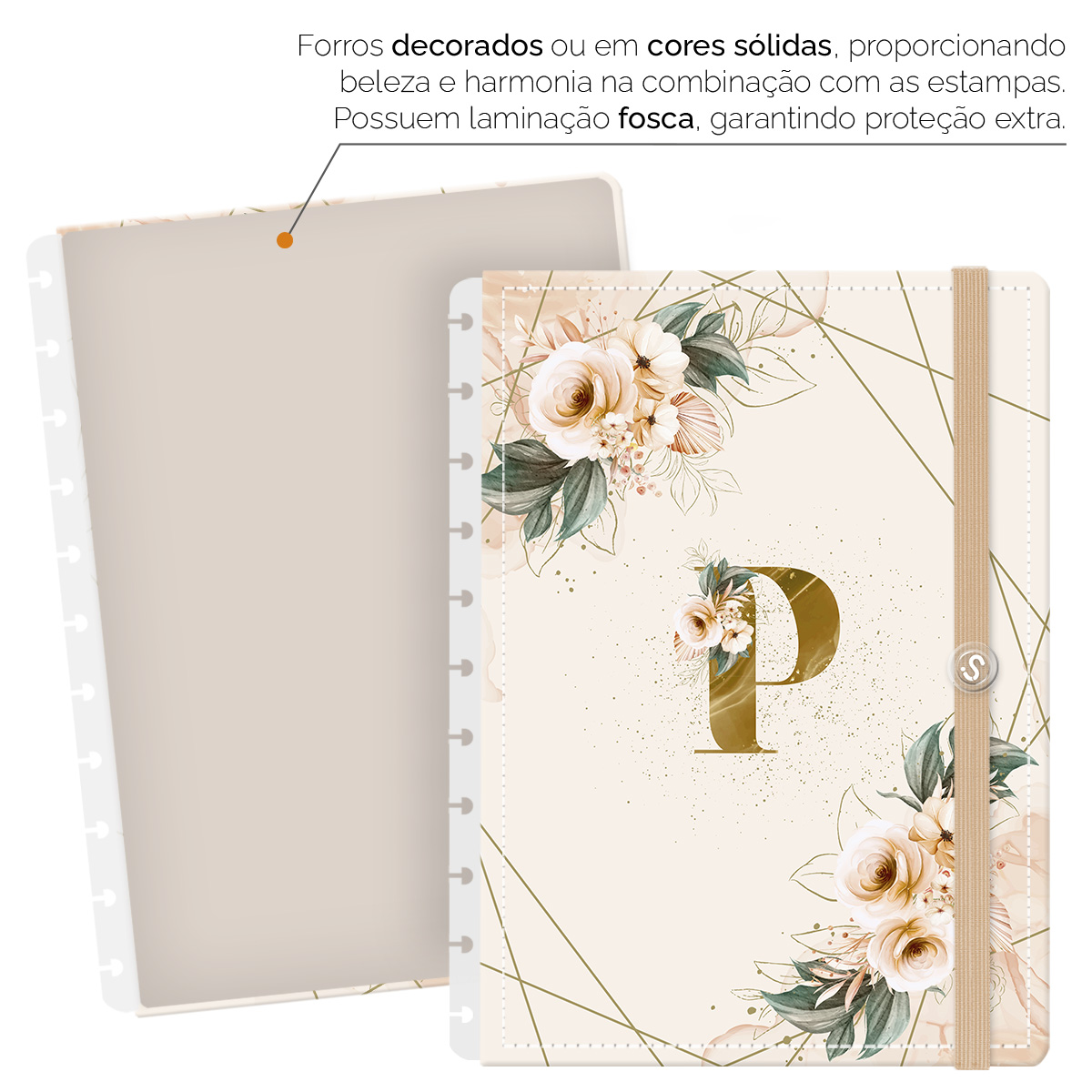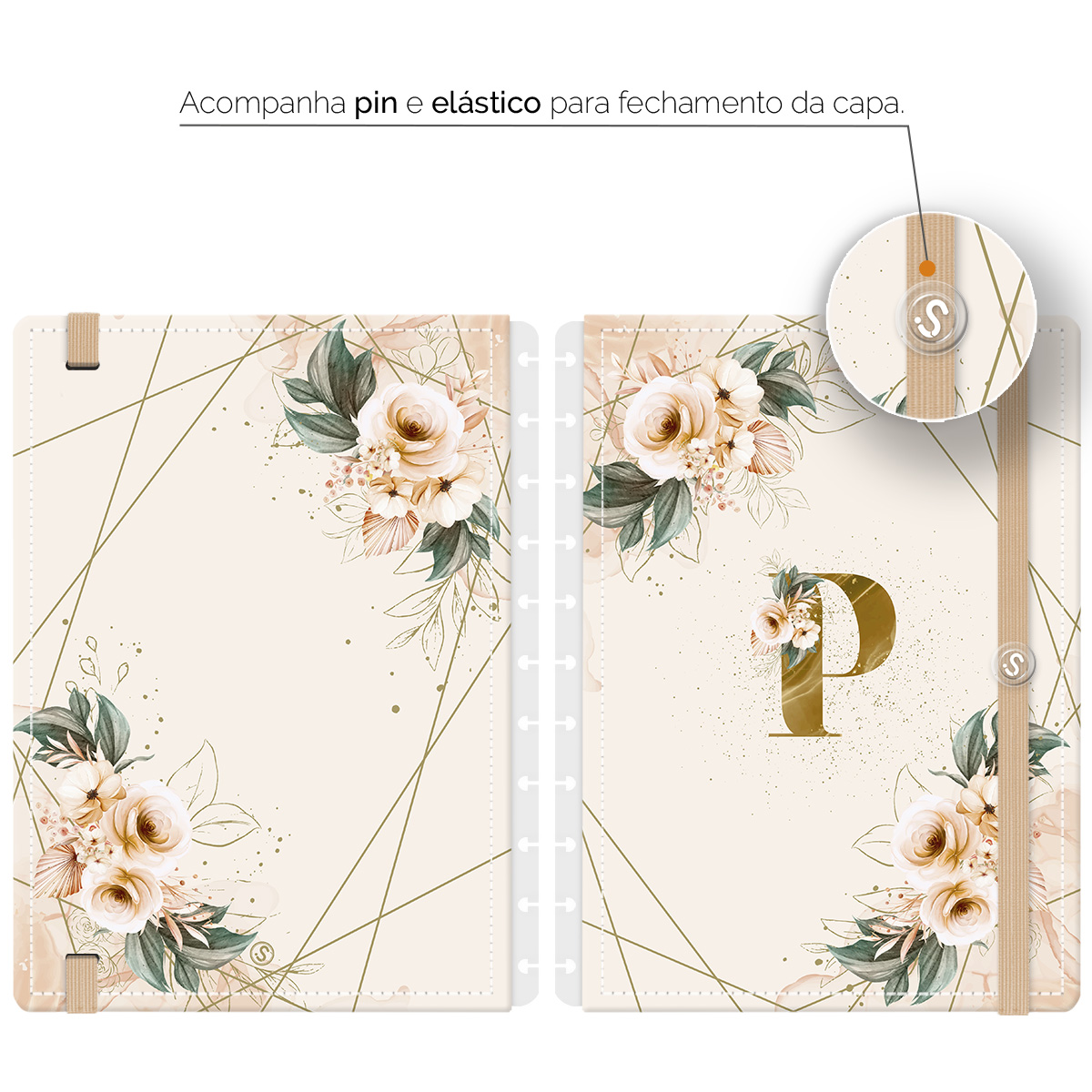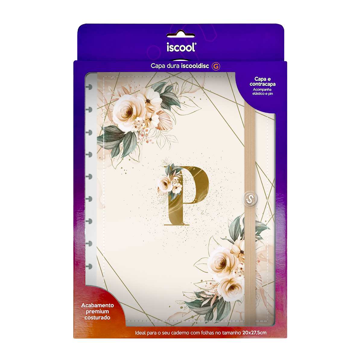 Capa e Contracapa Iscool Disc Monograma Floral Nude e Dourado Letra P