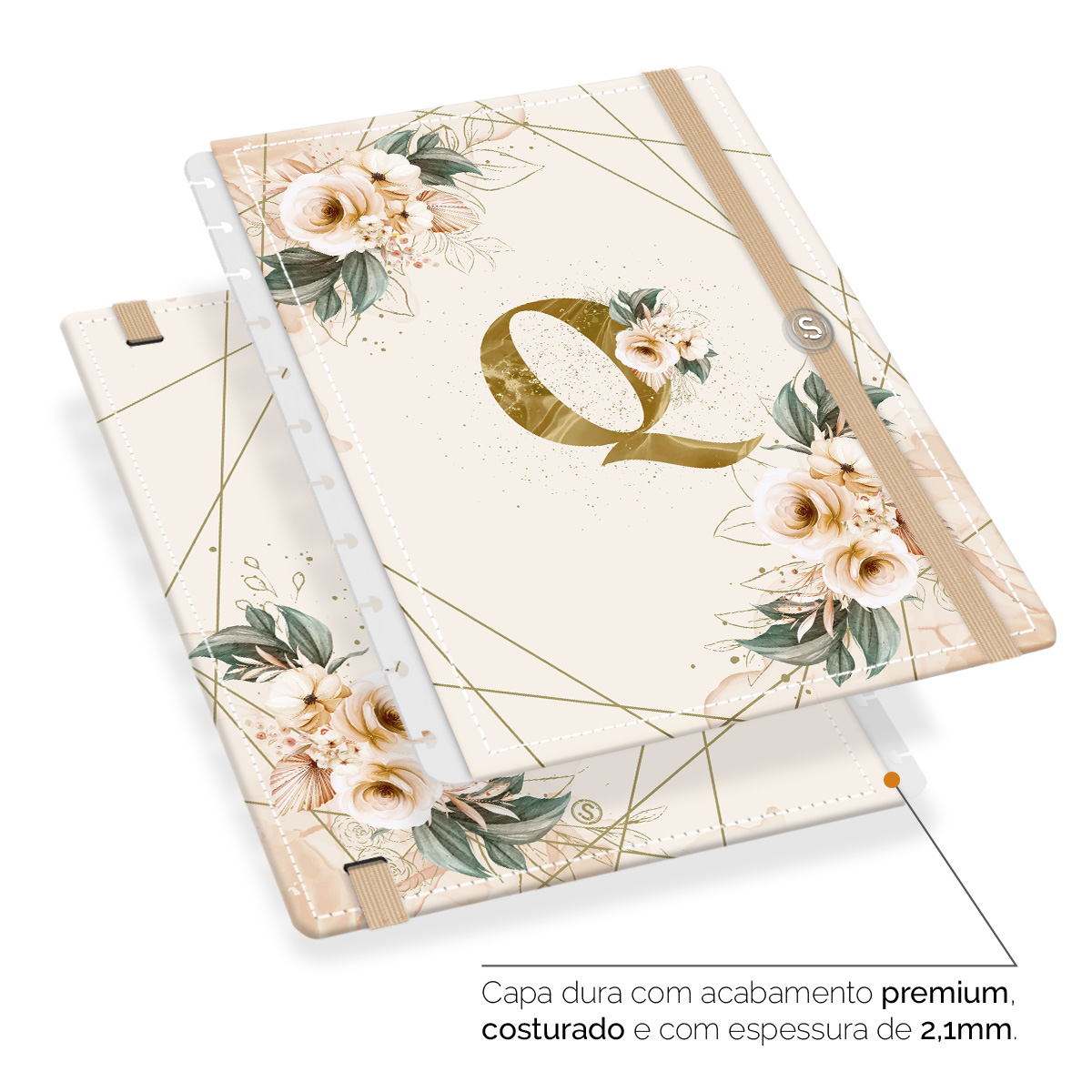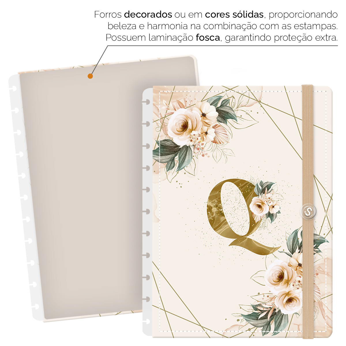 Capa e Contracapa Iscool Disc Monograma Floral Nude e Dourado Letra Q