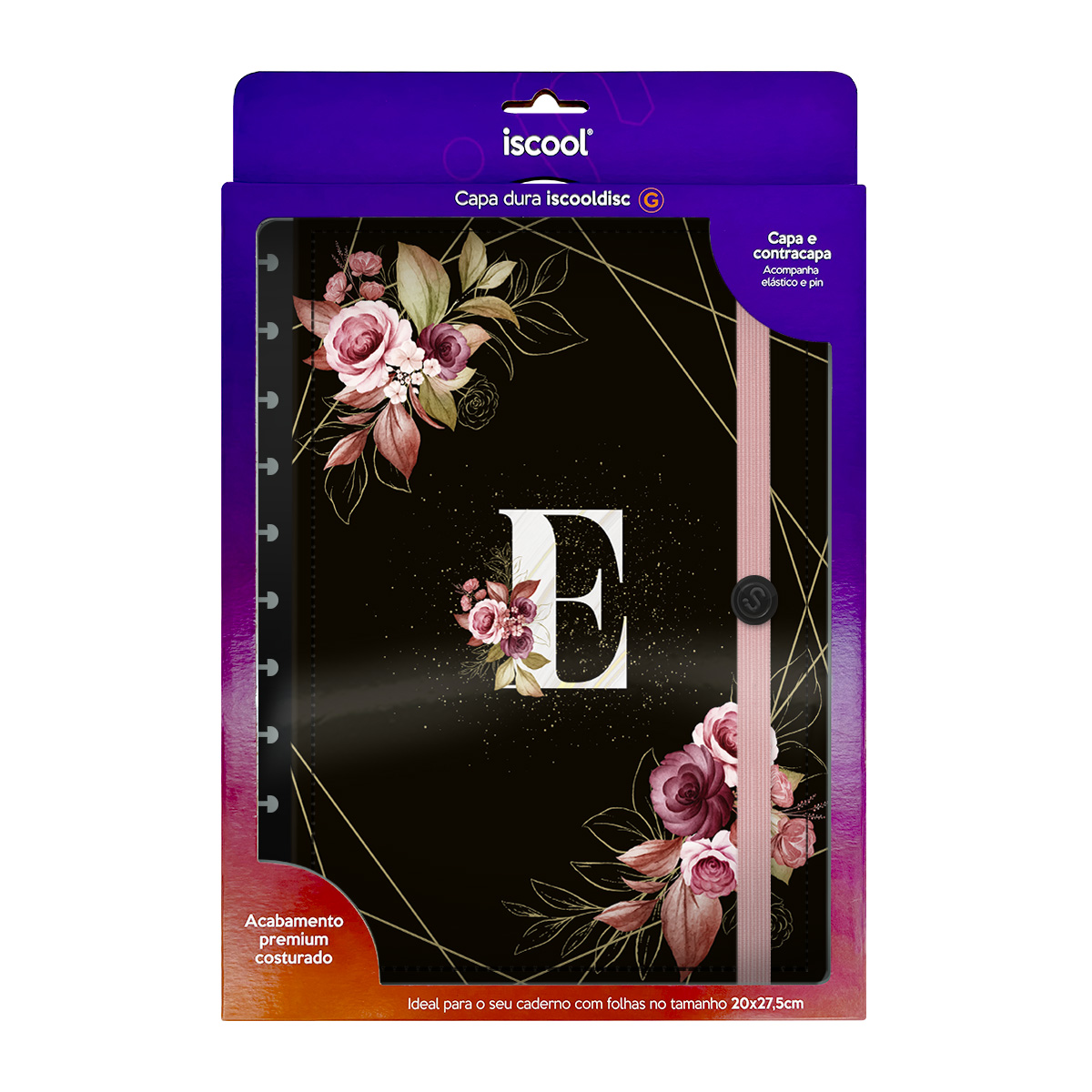 Capa e Contracapa Iscool Disc Monograma Floral Preto E Rosa Letra E