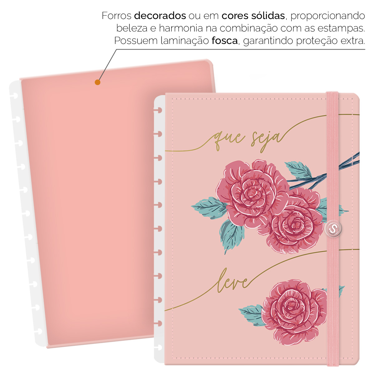 - Forros decorados ou em cores sólidas, com laminação fosca, garantem proteção extra.