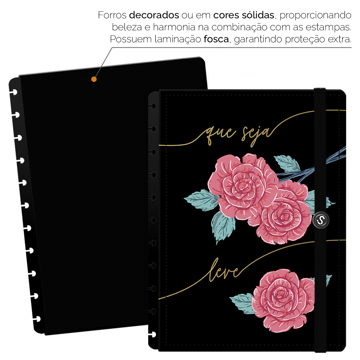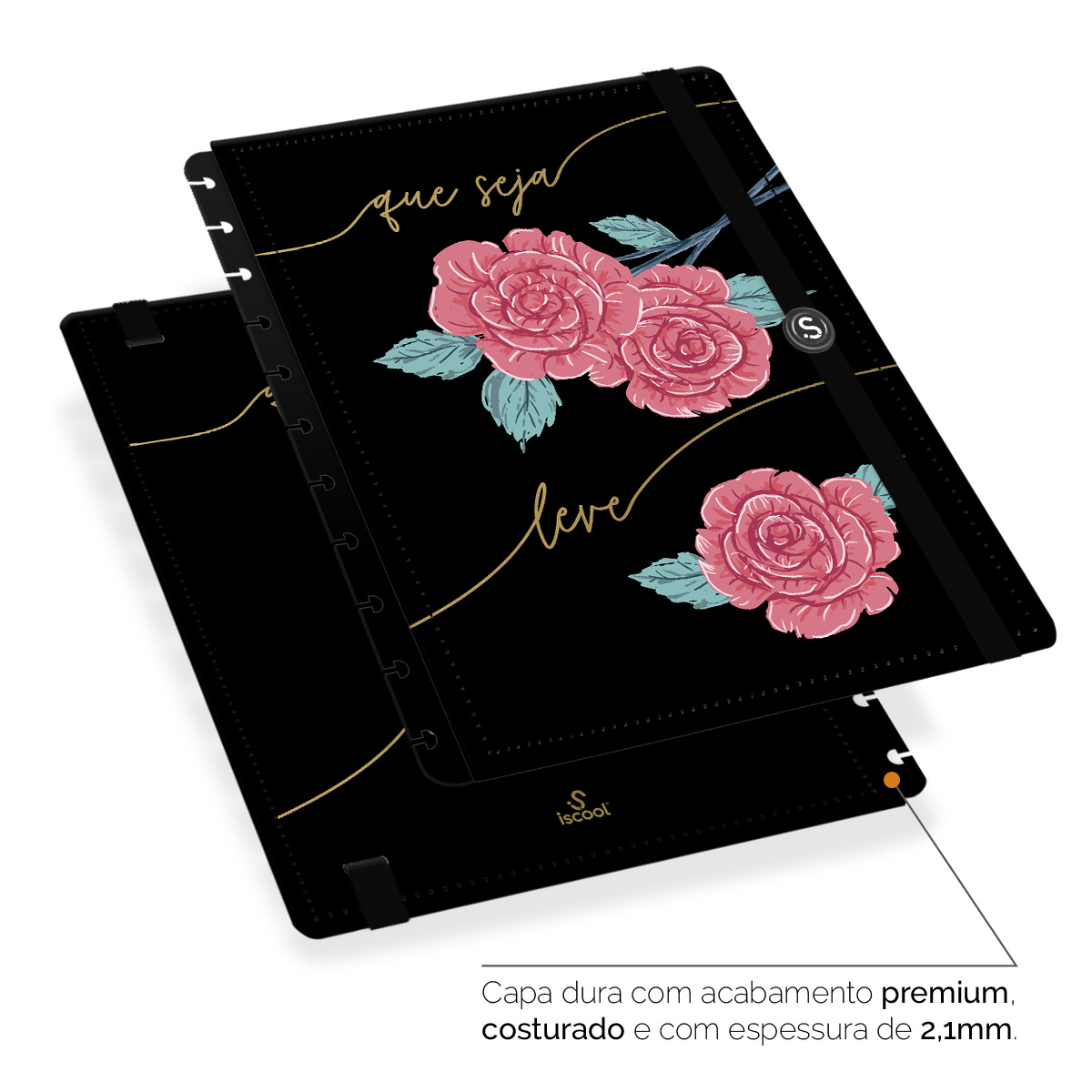 - Capa dura com acabamento premium, costurada e com espessura de 2,1 mm.