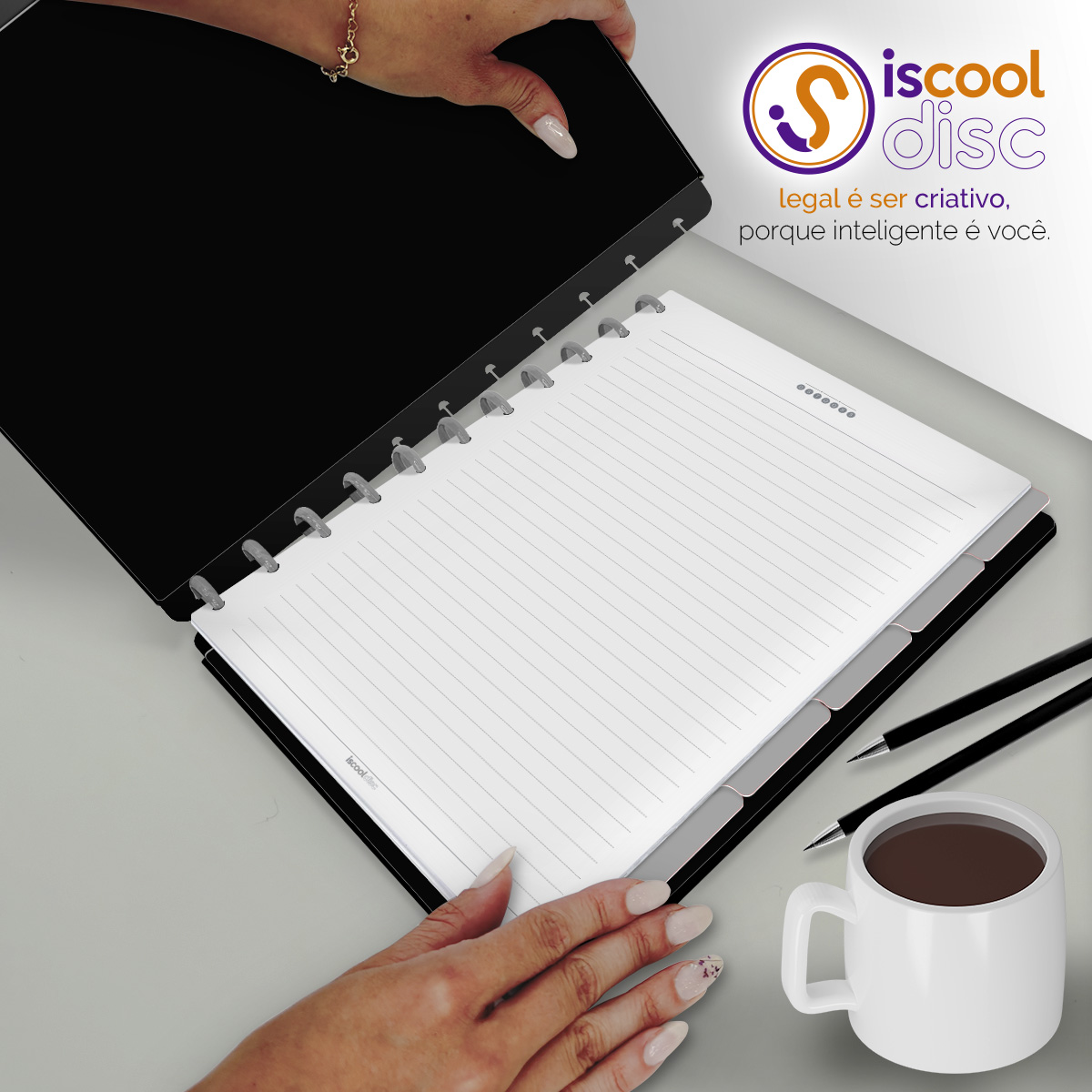 Com furos no formato de "cogumelo", é compatível com outros fabricantes de cadernos de disco, inclusive da marca Caderno Inteligente®.