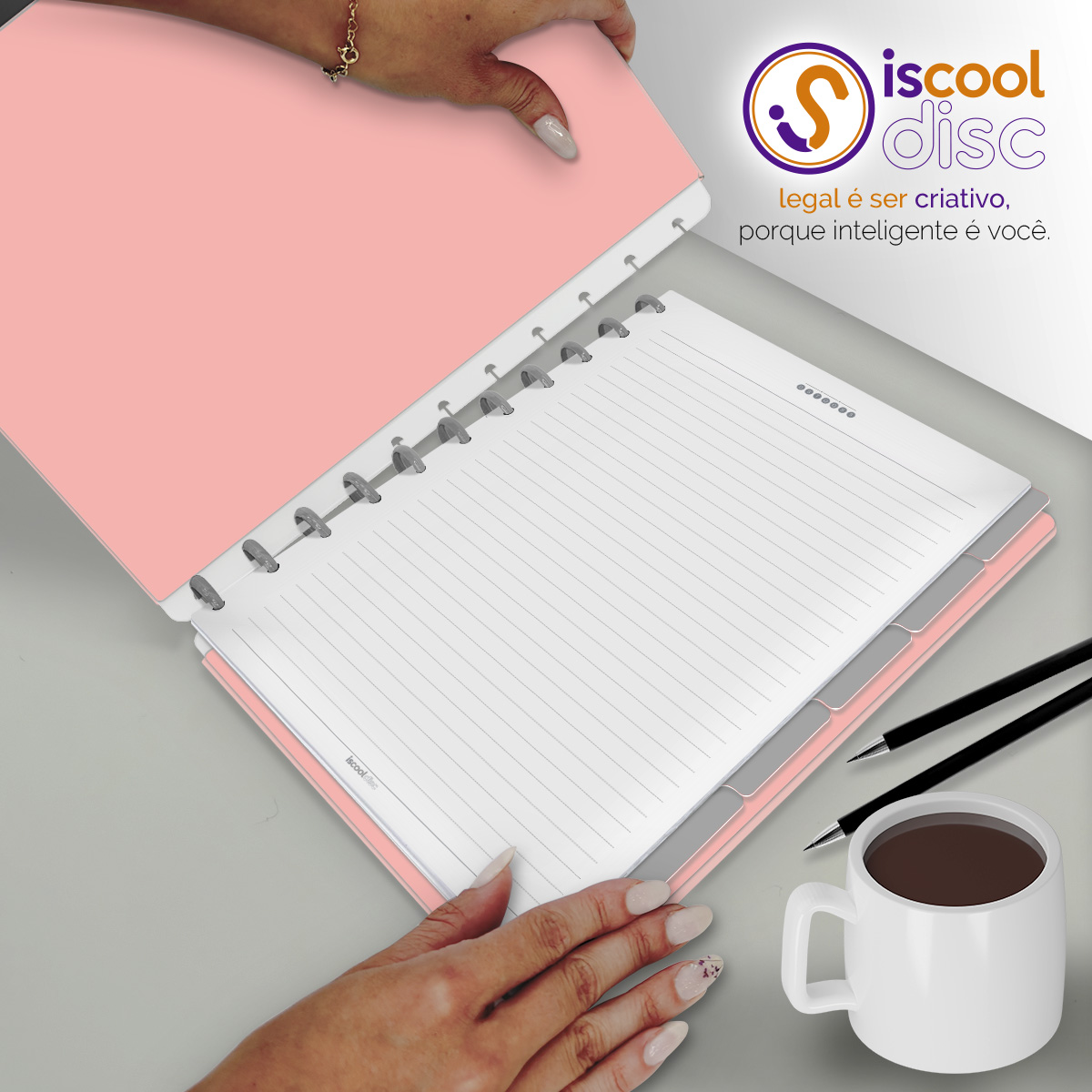 Com furos no formato de "cogumelo", é compatível com outros fabricantes de cadernos de disco, inclusive da marca Caderno Inteligente®.