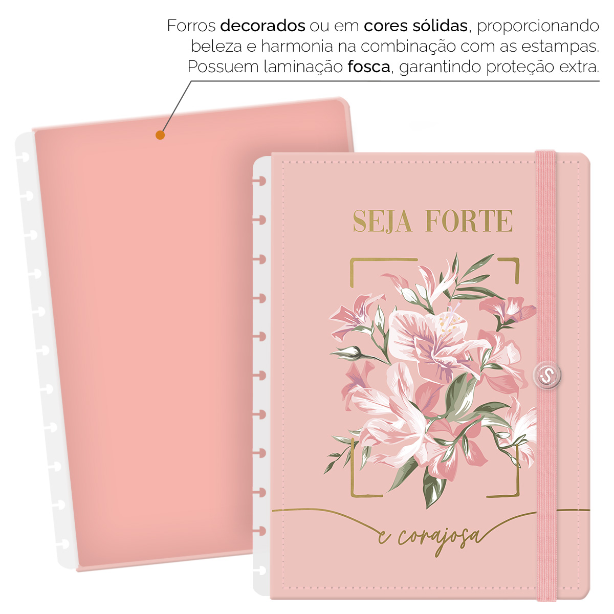 - Forros decorados ou em cores sólidas, com laminação fosca, garantem proteção extra.