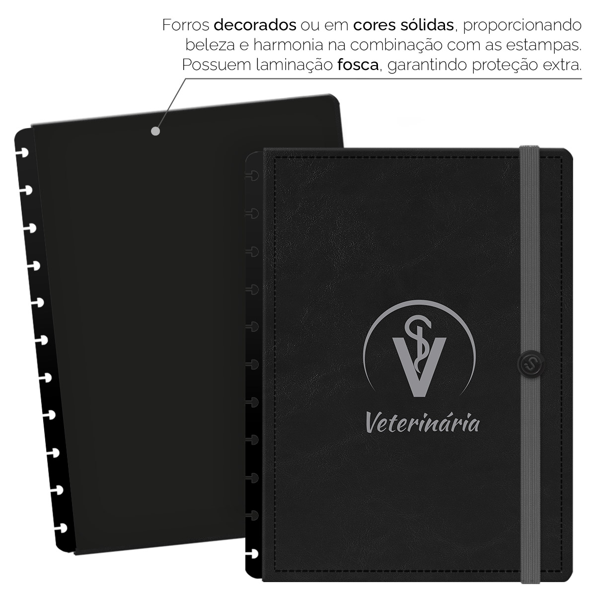 - Forros decorados ou em cores sólidas, com laminação fosca, garantem proteção extra.