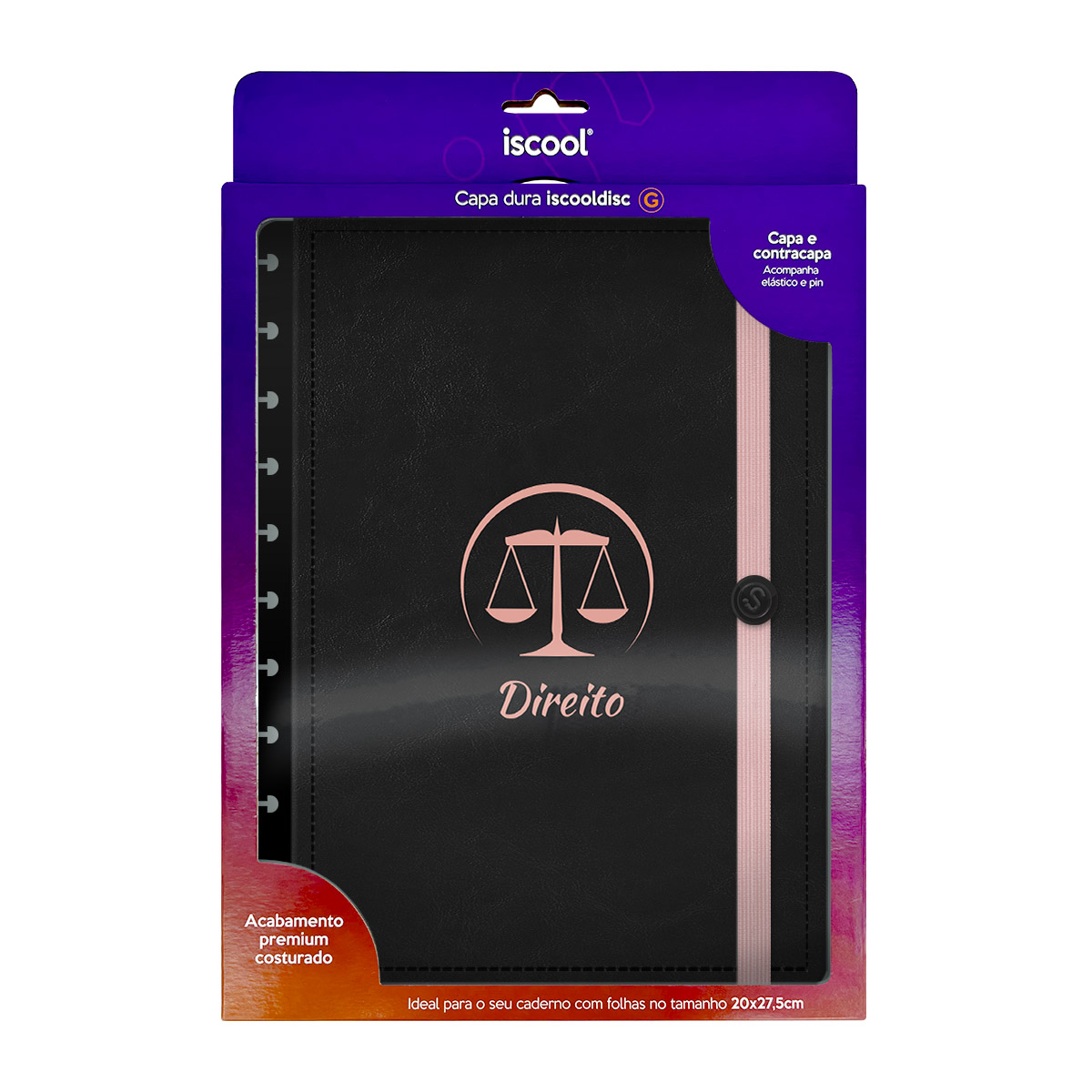 Com as capas iscool Prime, você pode renovar a “cara” do seu caderno de disco sempre que desejar! A caixa inclui capa e contracapa, além de extras que fazem toda a diferença: elástico para fechamento da capa, folha de dados e calendário.