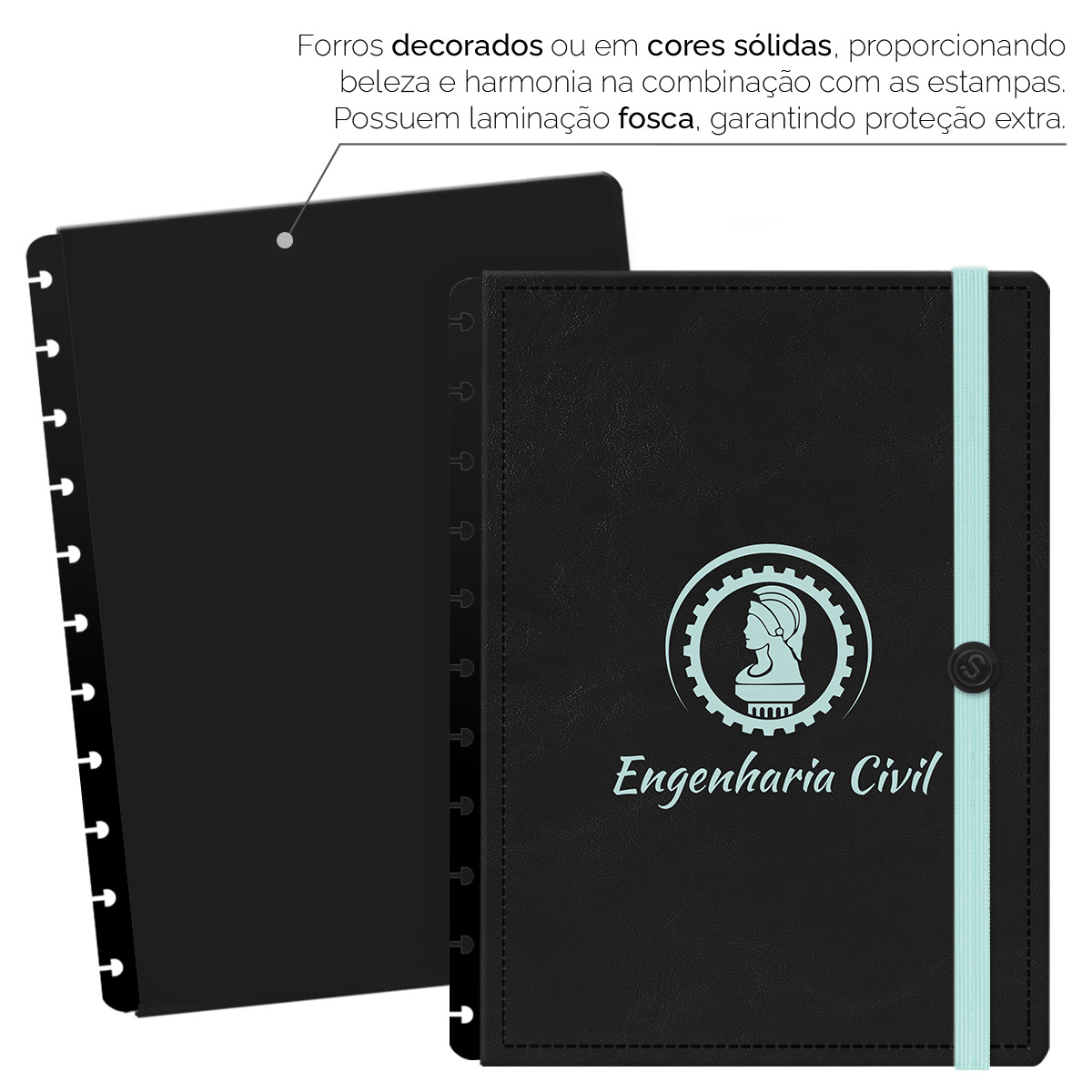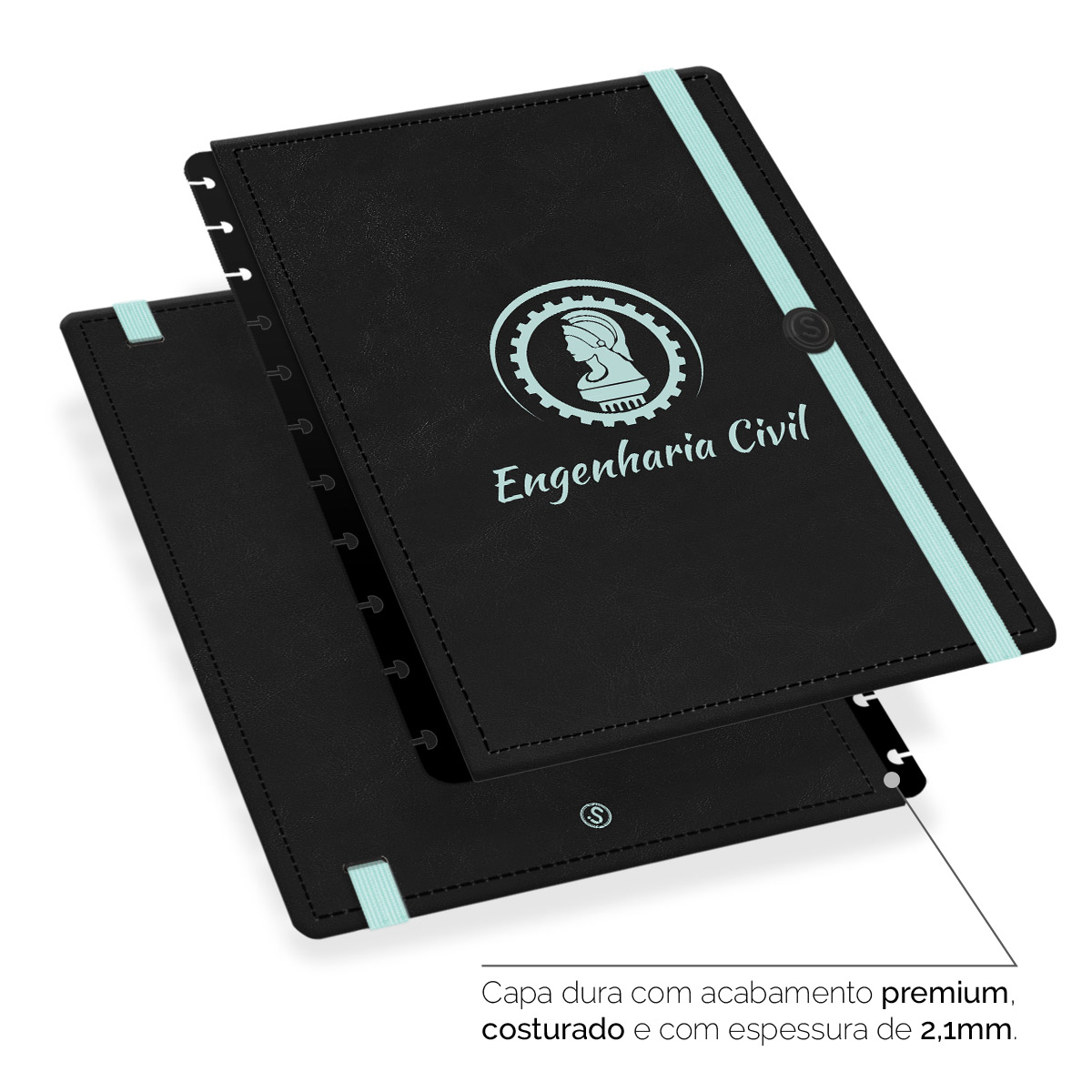 - Capa dura com acabamento premium, costurada e com espessura de 2,1 mm.