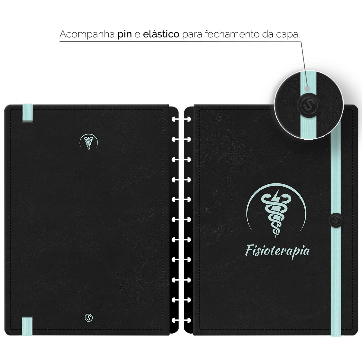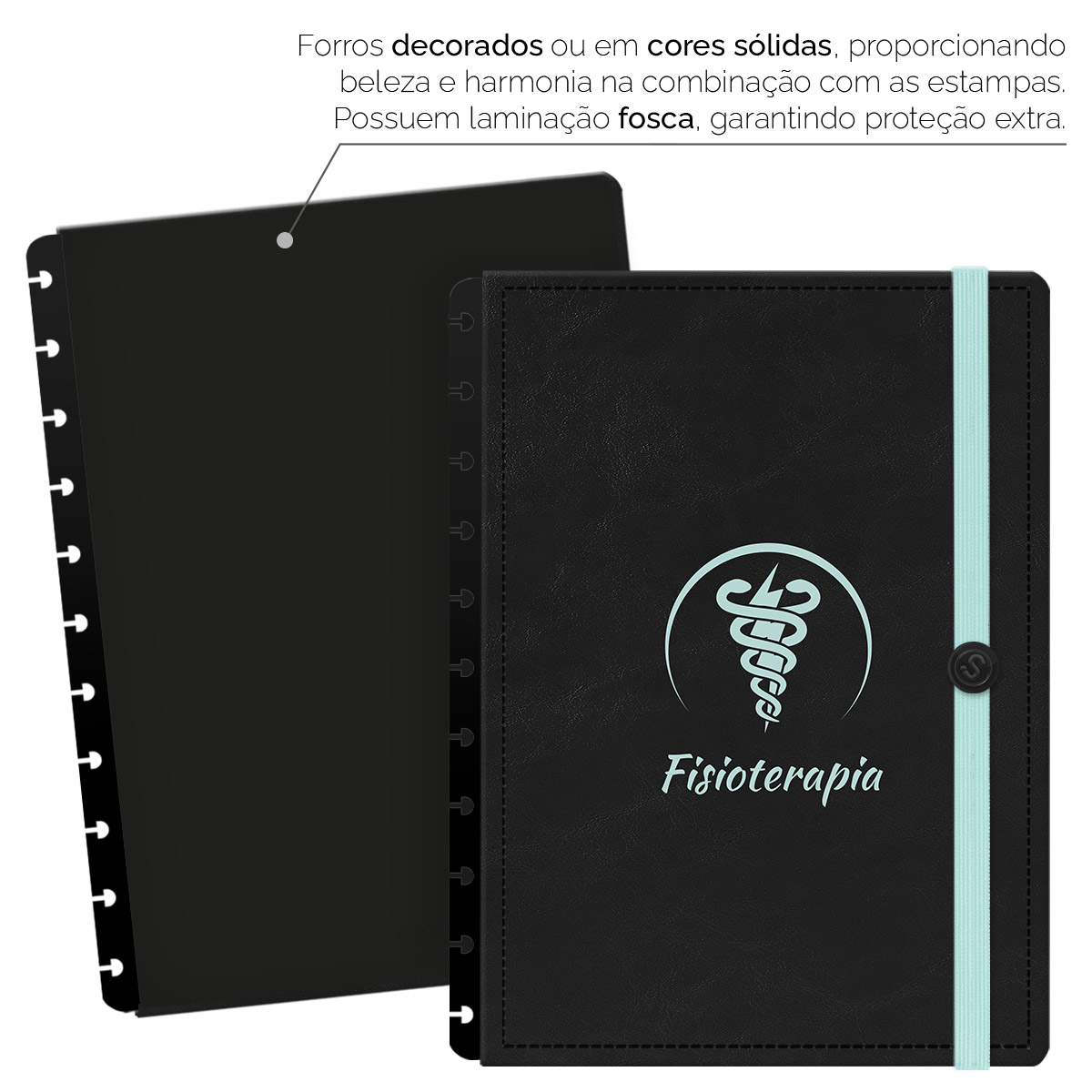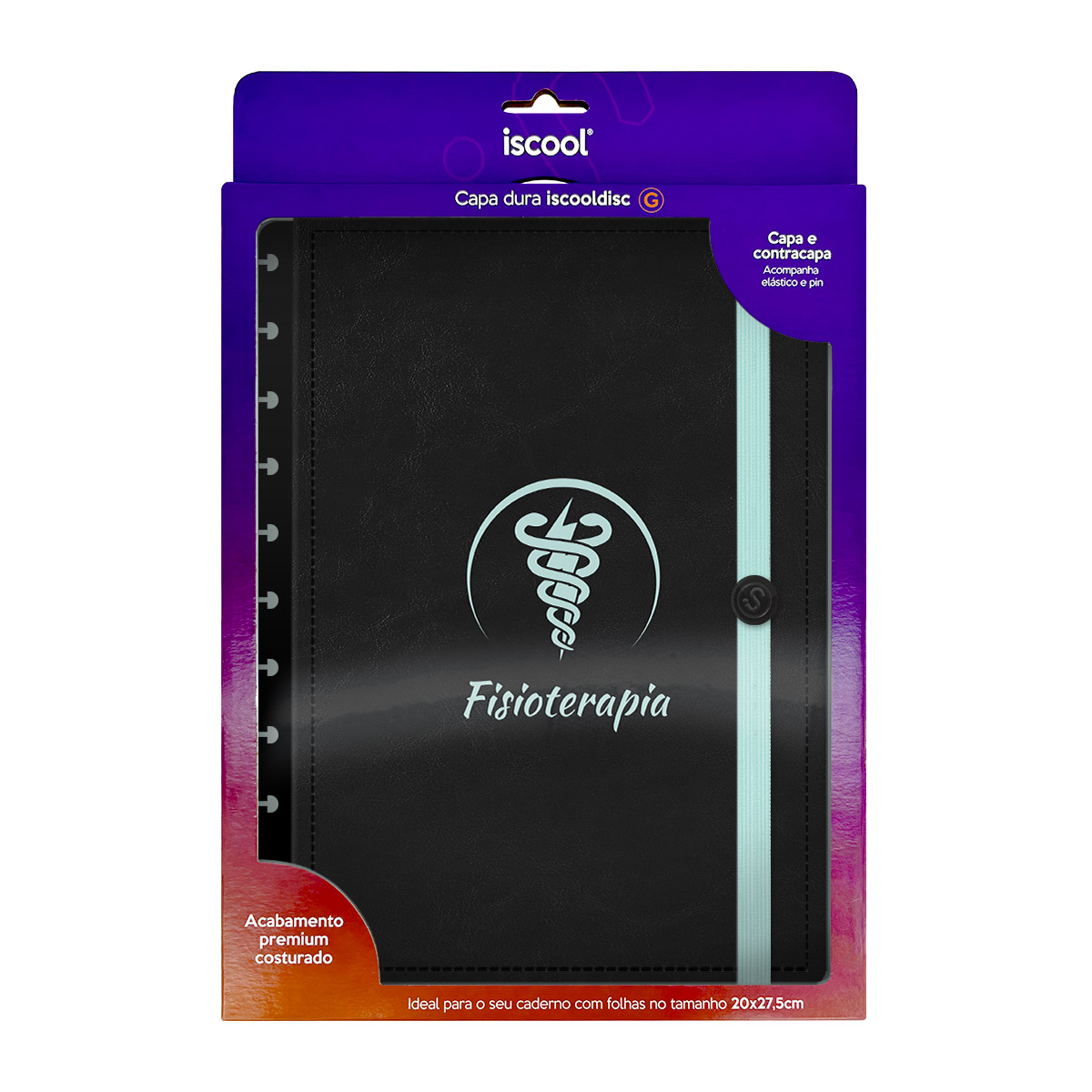 Capa e Contracapa Iscool Disc Profissões Preto Turquesa Fisioterapia