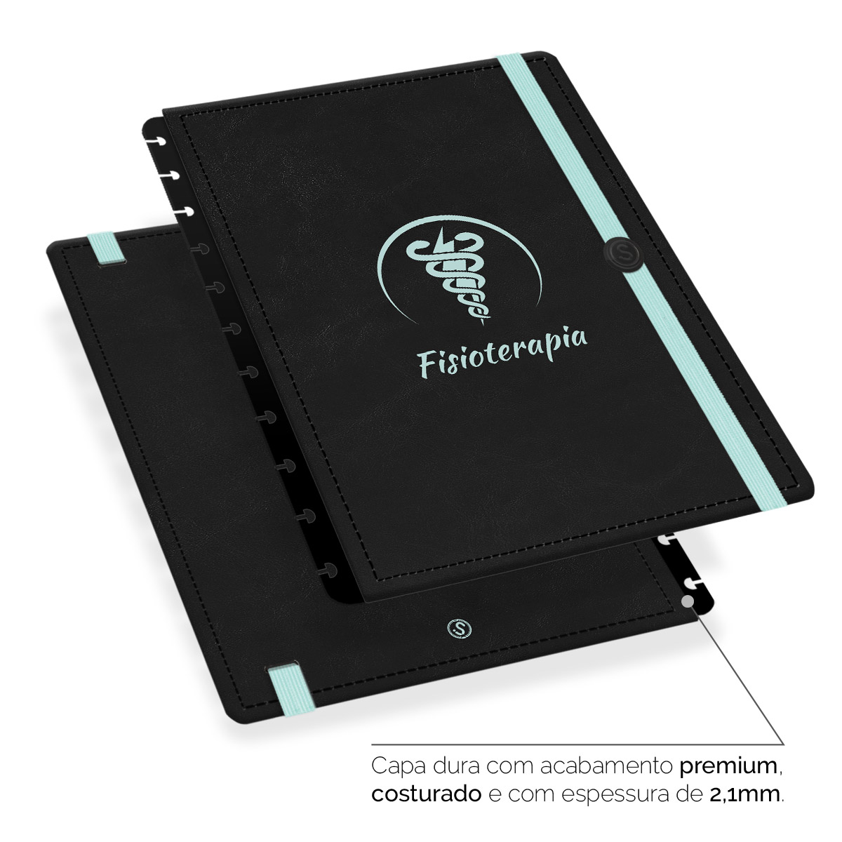 - Capa dura com acabamento premium, costurada e com espessura de 2,1 mm.