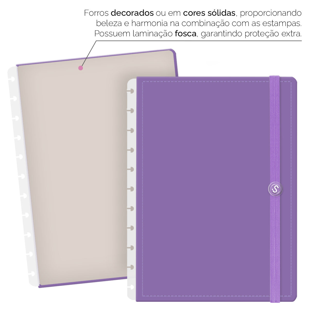 - Forros decorados ou em cores sólidas, com laminação fosca, garantem proteção extra.