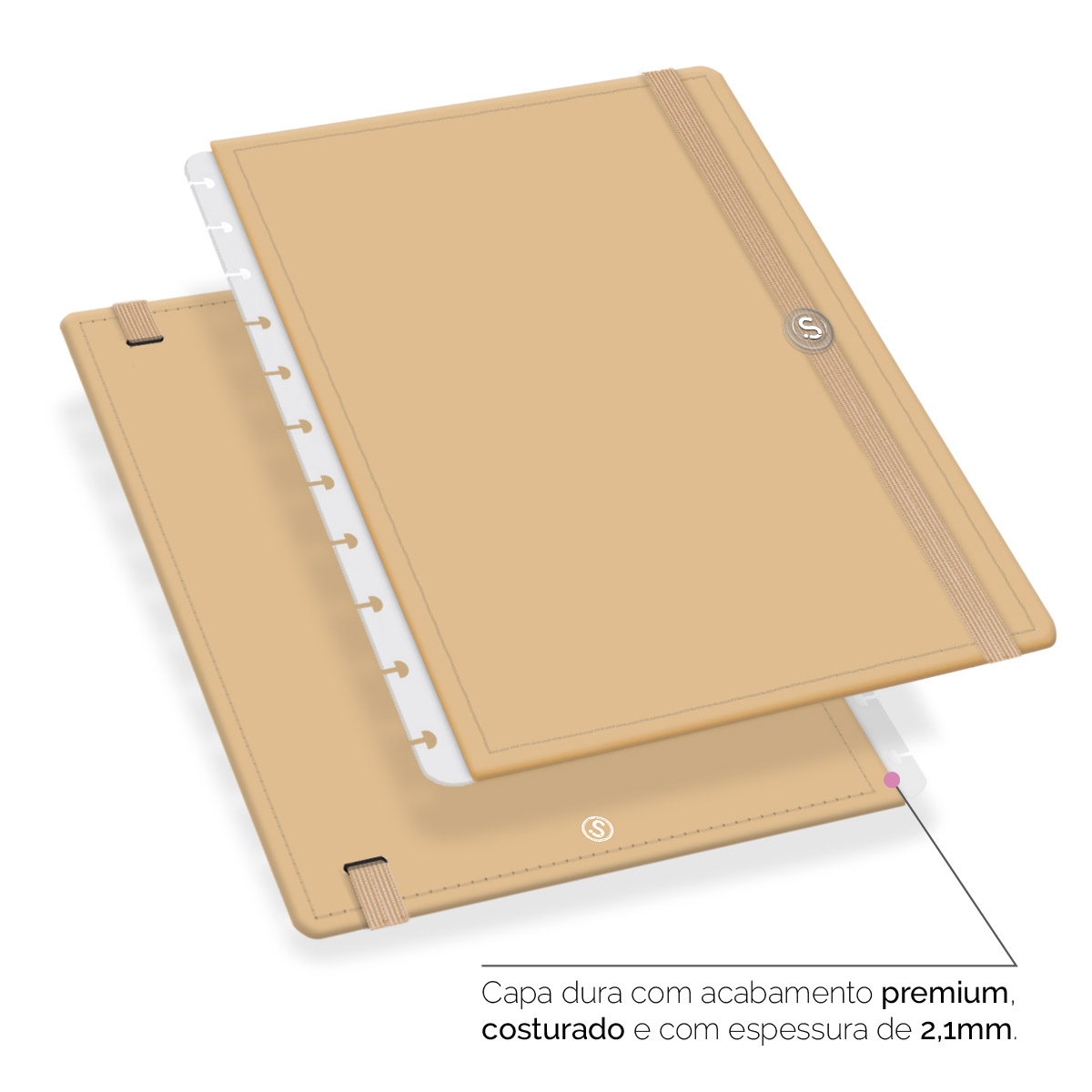 - Capa dura com acabamento premium, costurada e com espessura de 2,1 mm.