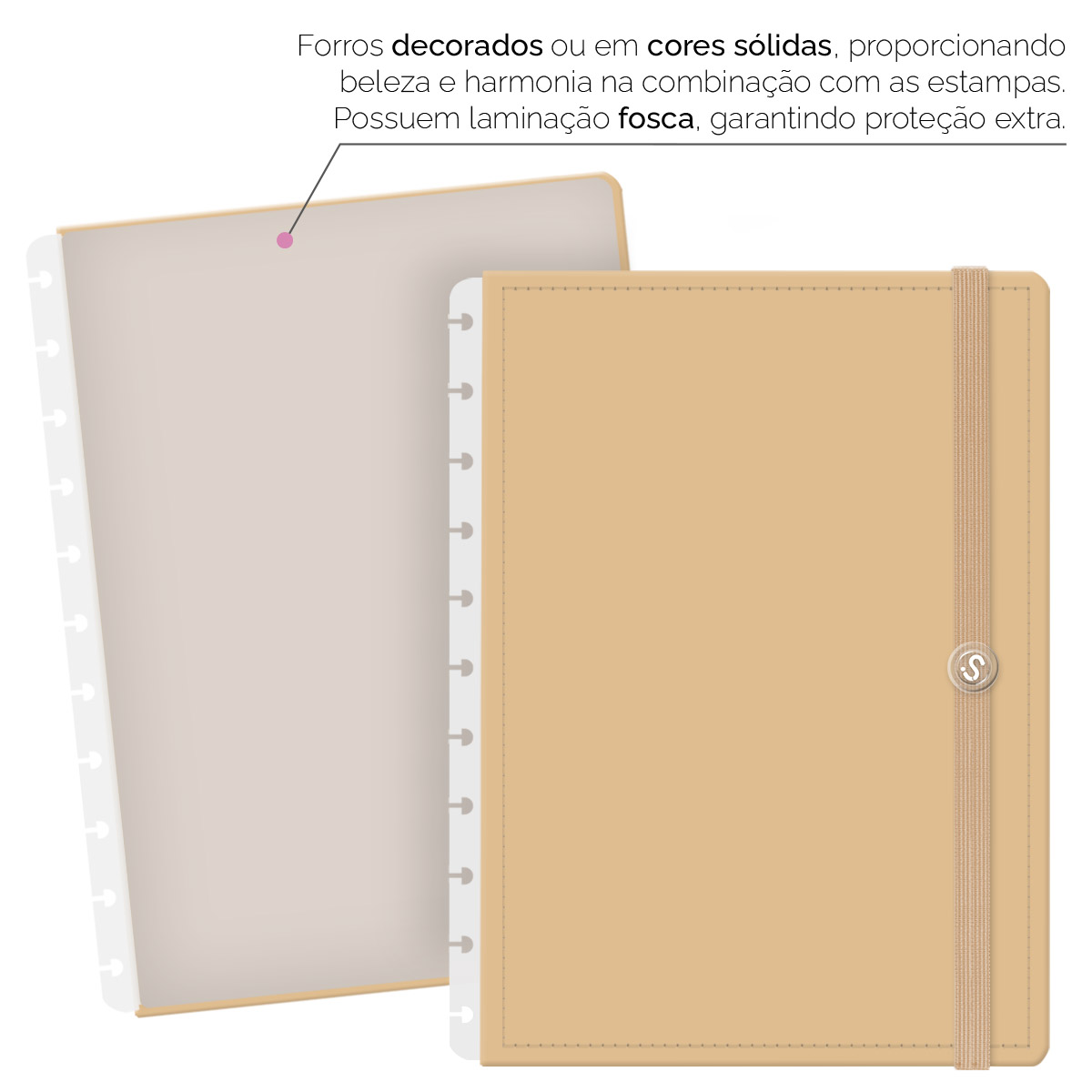- Forros decorados ou em cores sólidas, com laminação fosca, garantem proteção extra.