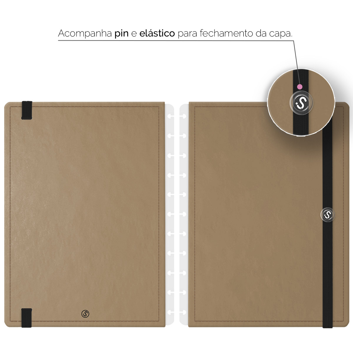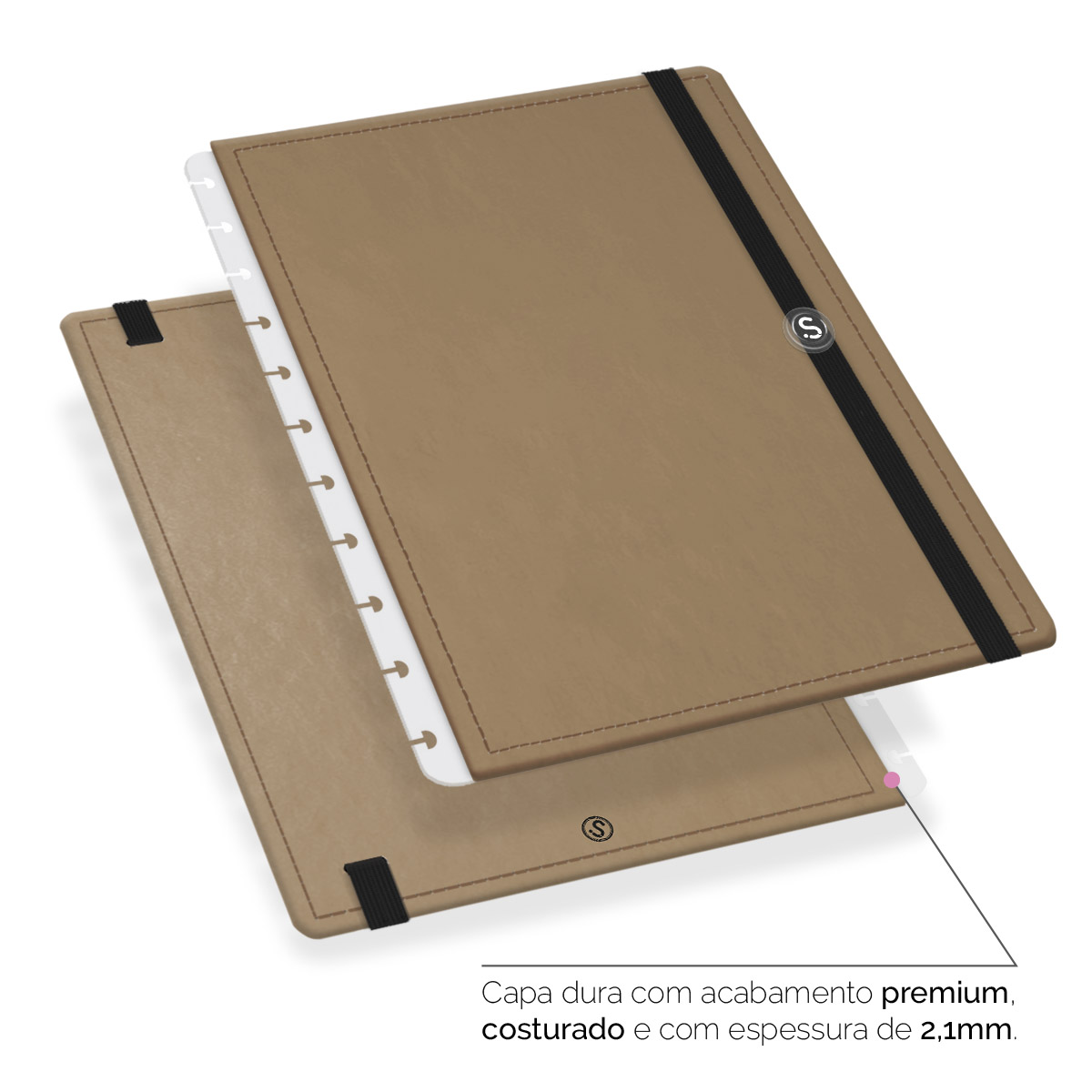 - Capa dura com acabamento premium, costurada e com espessura de 2,1 mm.