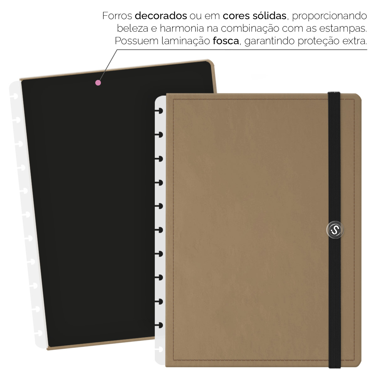 - Forros decorados ou em cores sólidas, com laminação fosca, garantem proteção extra.