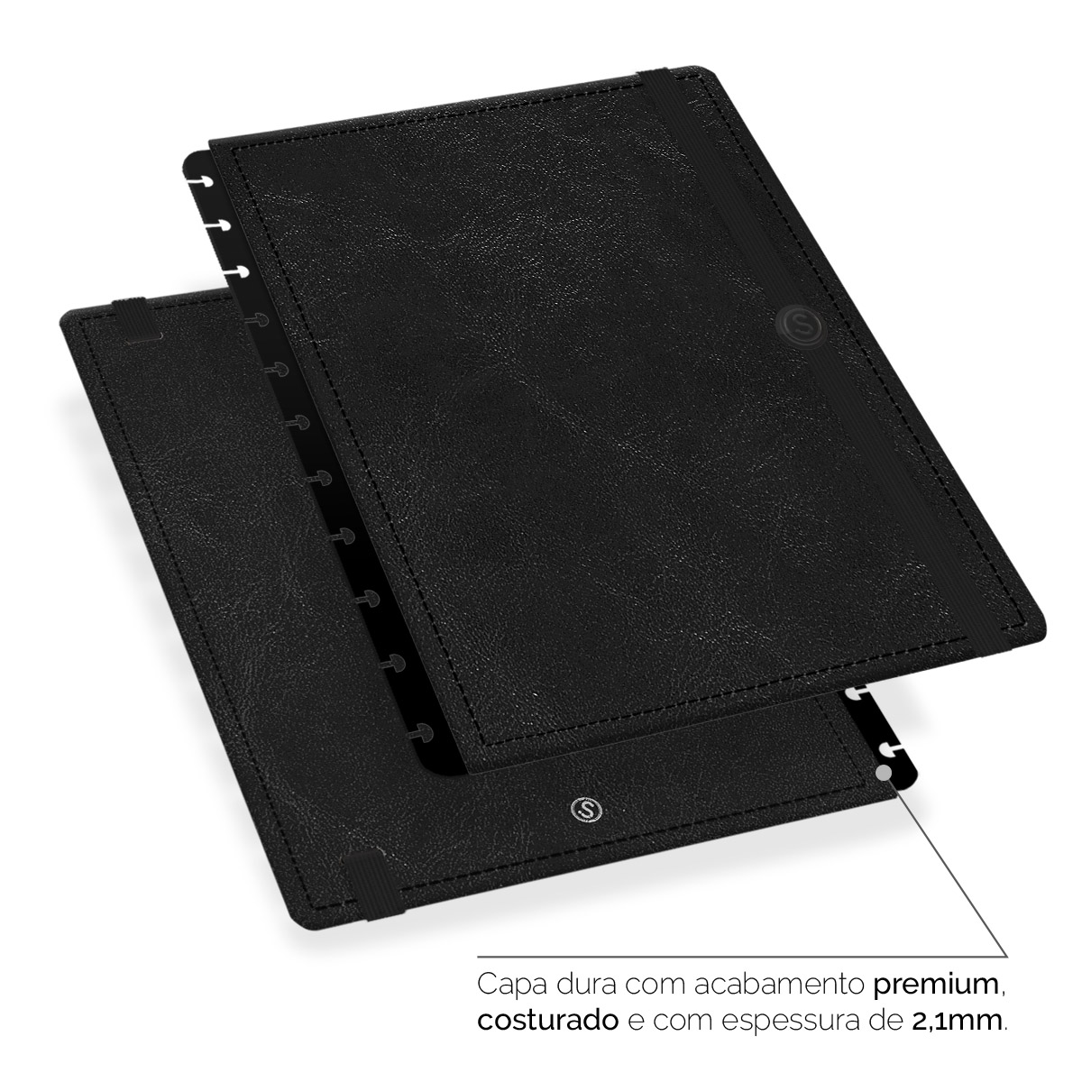 - Capa dura com acabamento premium, costurada e com espessura de 2,1 mm.
