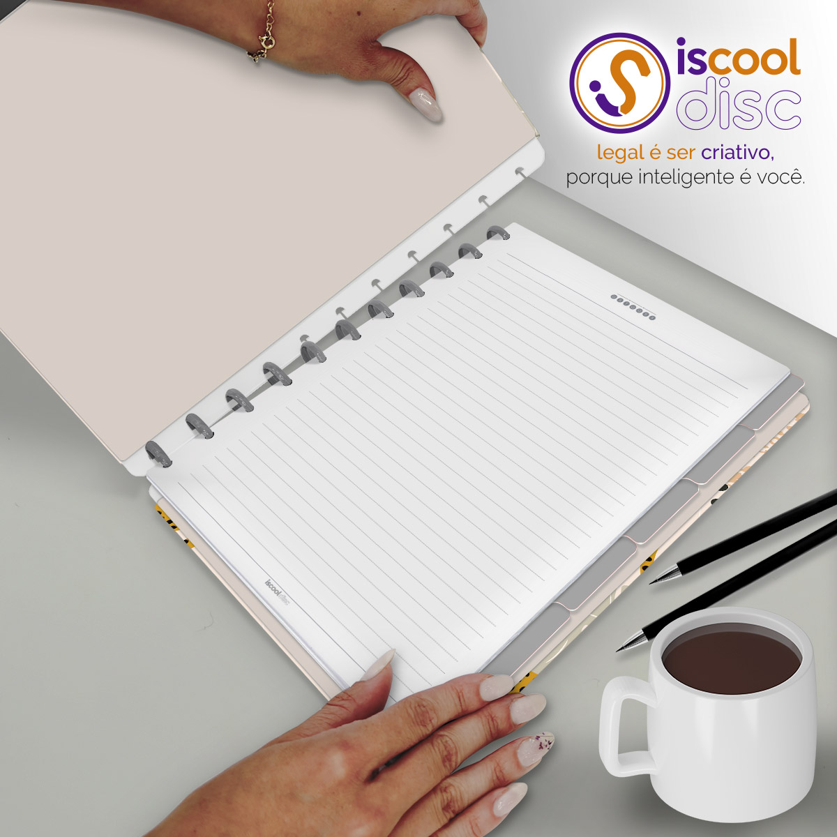 Com furos no formato de "cogumelo", é compatível com outros fabricantes de cadernos de disco, inclusive da marca Caderno Inteligente®.