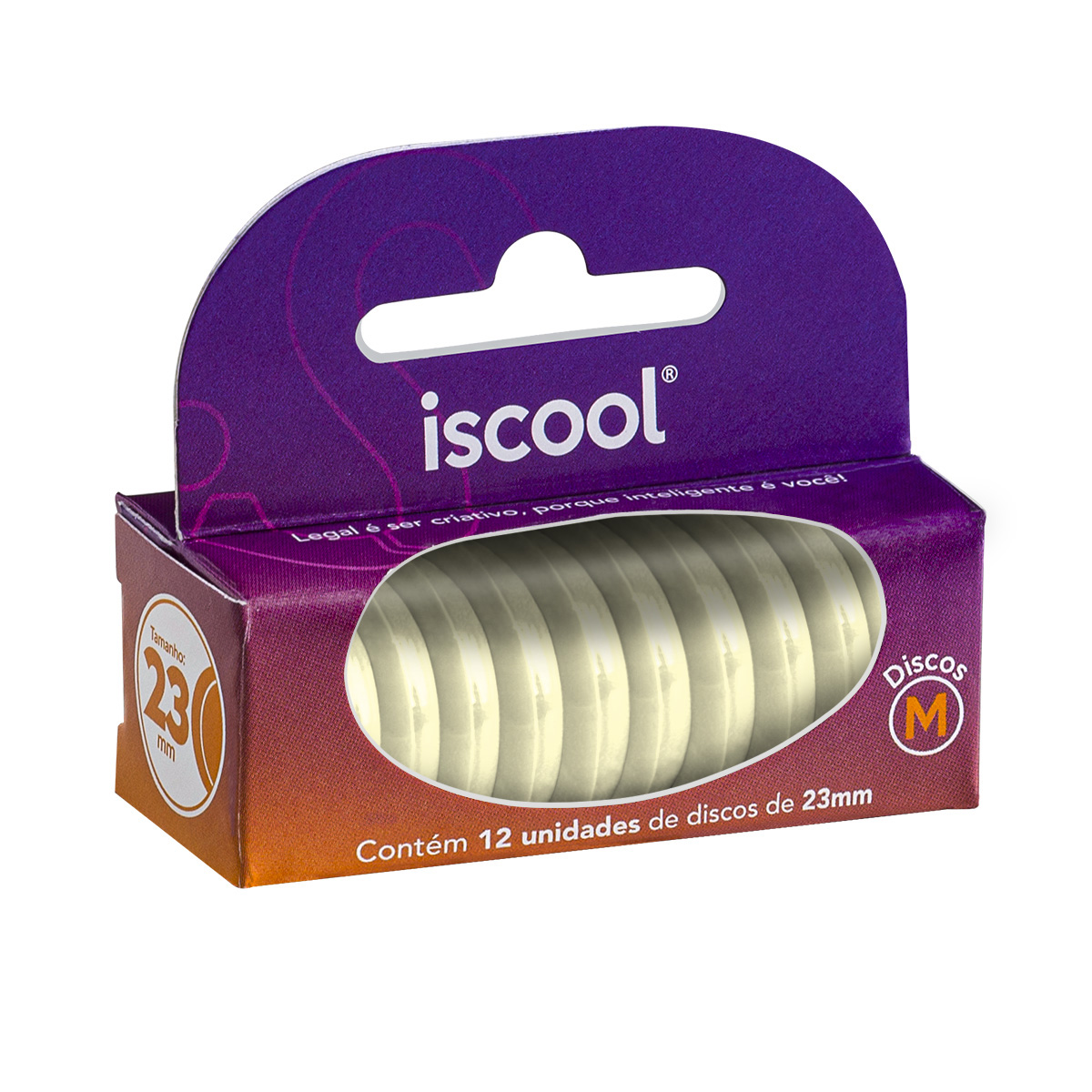 A embalagem contém 12 discos tamanho “M” com 23 mm de diâmetro, fabricados em polímero de poliamida, policarbonato e/ou poliestireno. Produto 100% nacional.