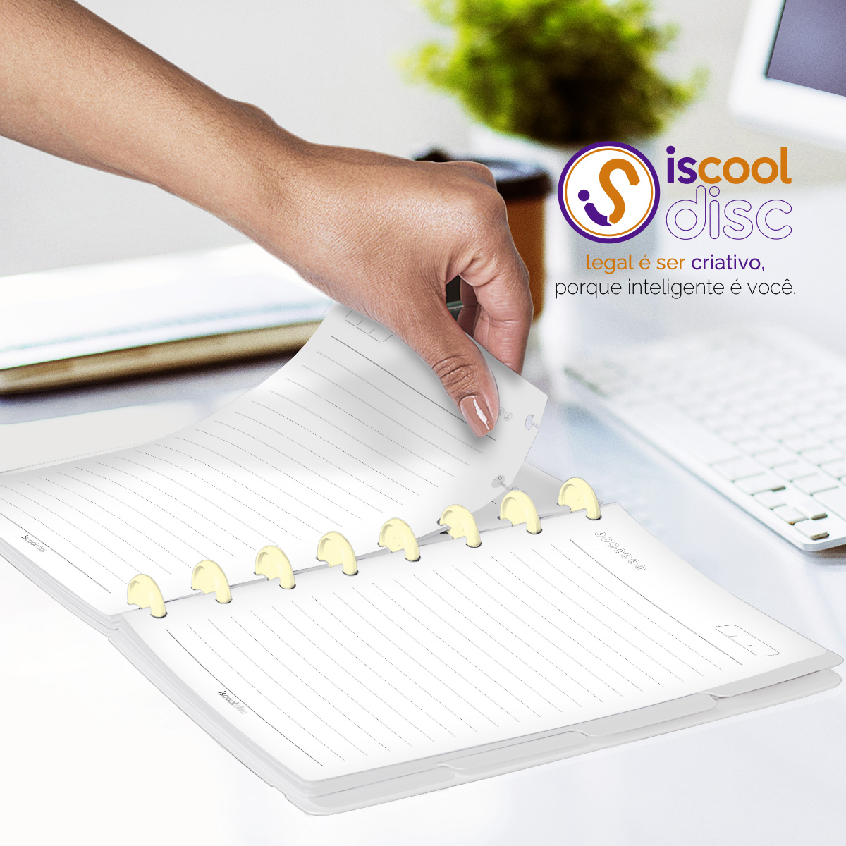 Com os discos iscool, você possui infinitas possibilidades para personalizar o seu caderno de disco com nossa ampla gama de cores e duas opções de tamanho.