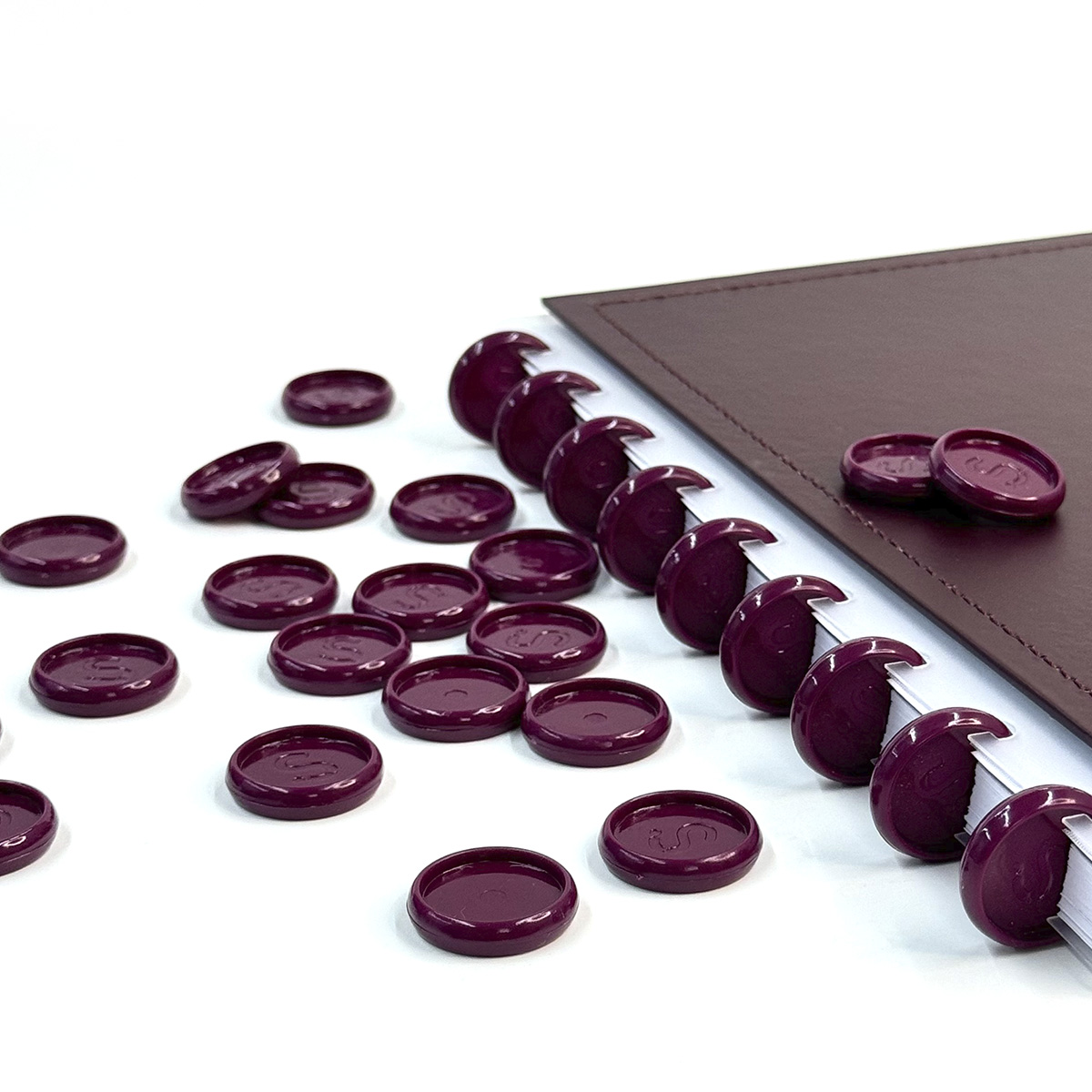Os nossos discos de 23 mm suportam até 80 folhas de 90 g ou 60 folhas de 120 g e são compatíveis com outros fabricantes de cadernos de disco, inclusive da marca Caderno Inteligente®.