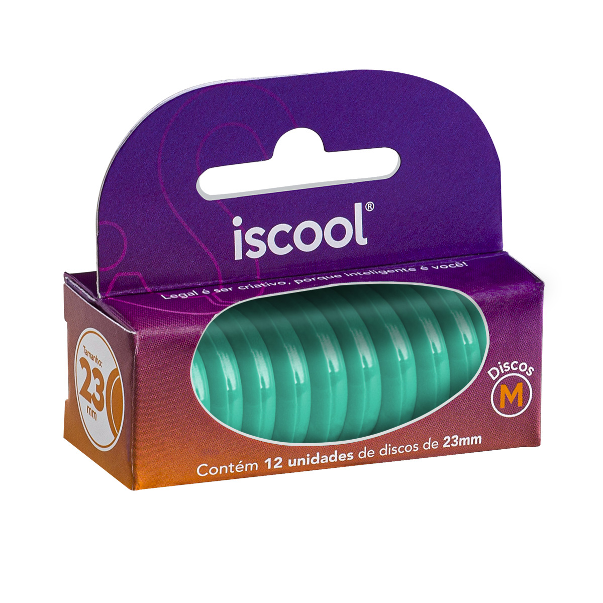 A embalagem contém 12 discos tamanho “M” com 23 mm de diâmetro, fabricados em polímero de poliamida, policarbonato e/ou poliestireno. Produto 100% nacional.