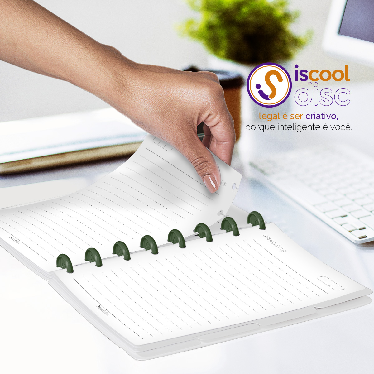 Com os discos iscool, você possui infinitas possibilidades para personalizar o seu caderno de disco com nossa ampla gama de cores e duas opções de tamanho.