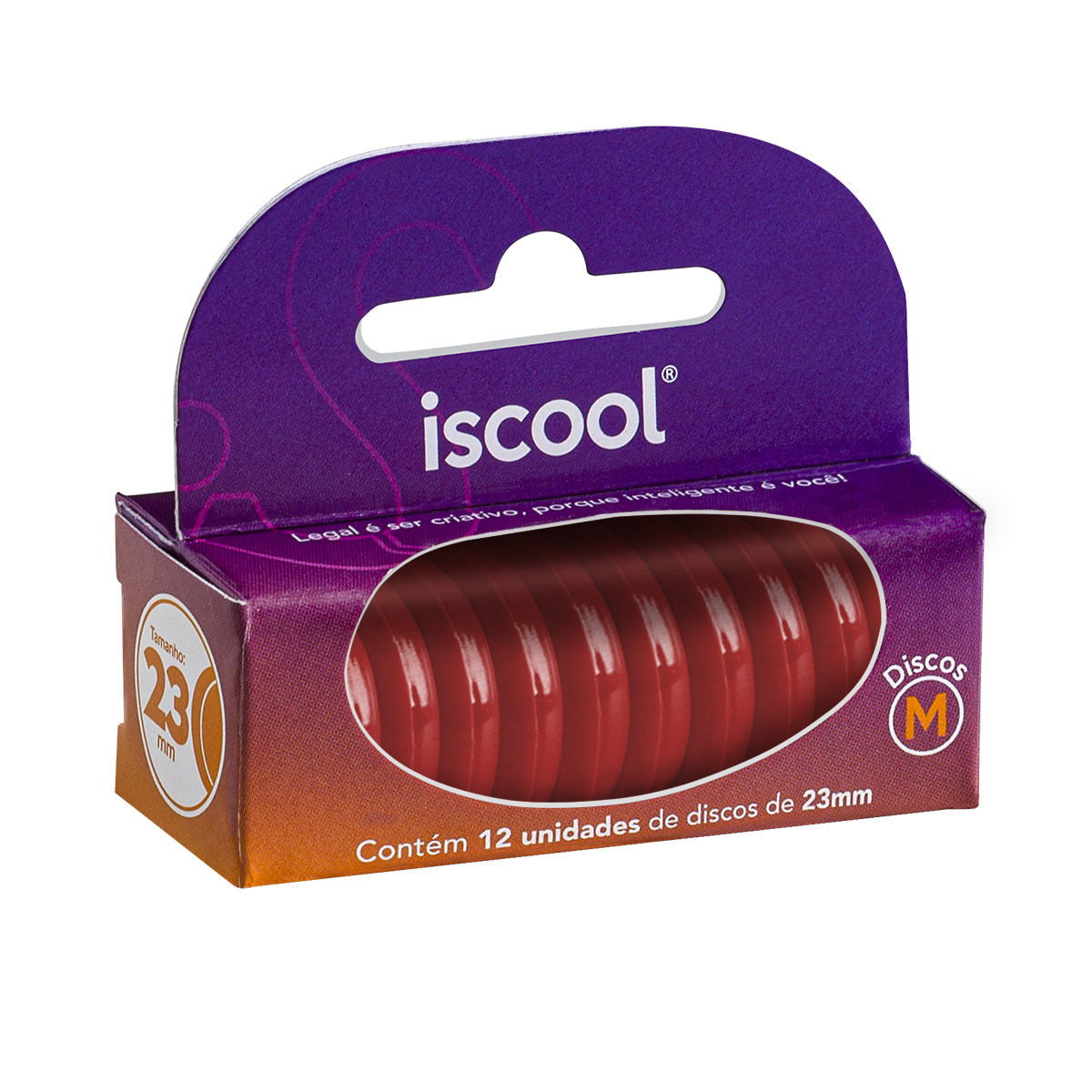 A embalagem contém 12 discos tamanho “M” com 23 mm de diâmetro, fabricados em polímero de poliamida, policarbonato e/ou poliestireno. Produto 100% nacional.