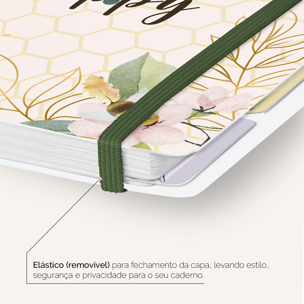 O miolo conta com 60 folhas pautadas decoradas em papel sulfite 90g, (aquele papel mais “grossinho”) para que você use e abuse das suas canetas especiais e 20 folhas em branco, ideais para explorar seu lado mais criativo.