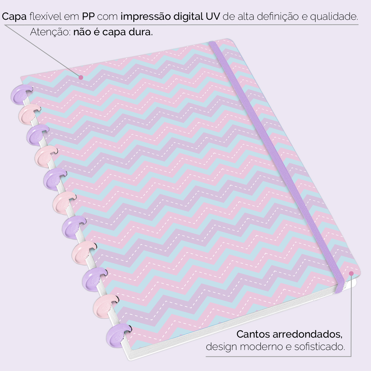 A capa é feita em PP com impressão digital UV de alta definição, acompanha 4 lindas divisórias, que você pode colocar em qualquer local do caderno, funcionando como o guia perfeito para sua organização.