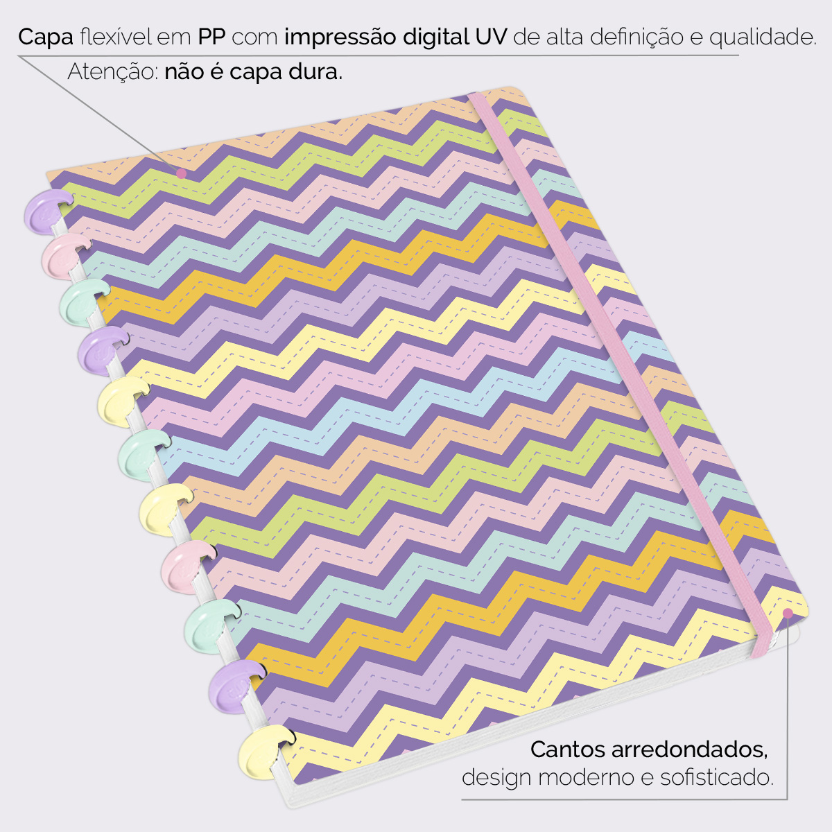 A capa é feita em PP com impressão digital UV de alta definição, acompanha 4 lindas divisórias, que você pode colocar em qualquer local do caderno, funcionando como o guia perfeito para sua organização.