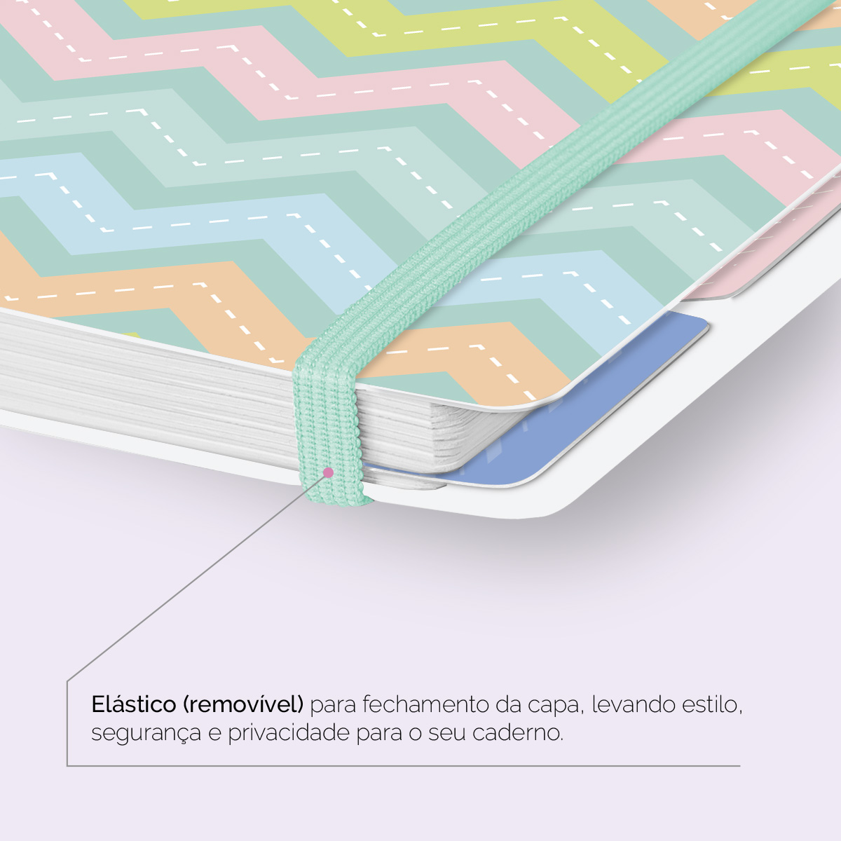 Elástico para fechamento da capa do caderno.