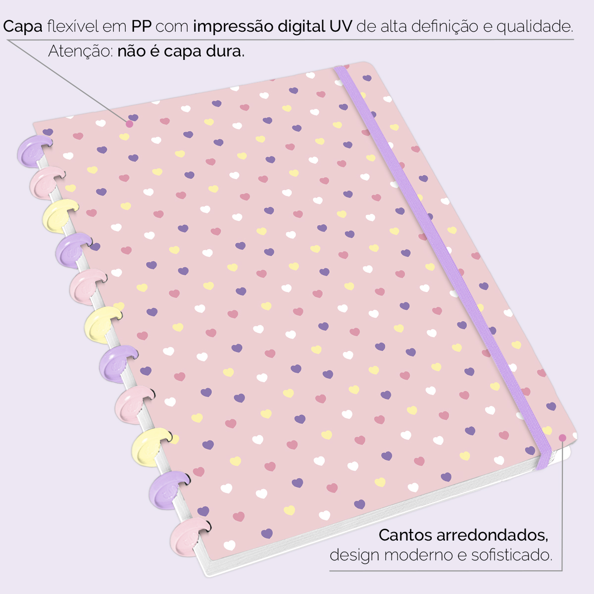 Um caderno totalmente customizável, no qual todos os elementos são reposicionáveis. Você pode montá-lo como preferir, deixando rolar solta toda sua criatividade.