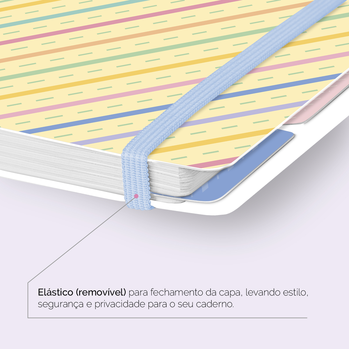 O miolo conta com 60 folhas pautadas decoradas em papel sulfite 90g, (aquele papel mais “grossinho”) para que você use e abuse das suas canetas especiais e 20 folhas em branco, ideais para explorar seu lado mais criativo.