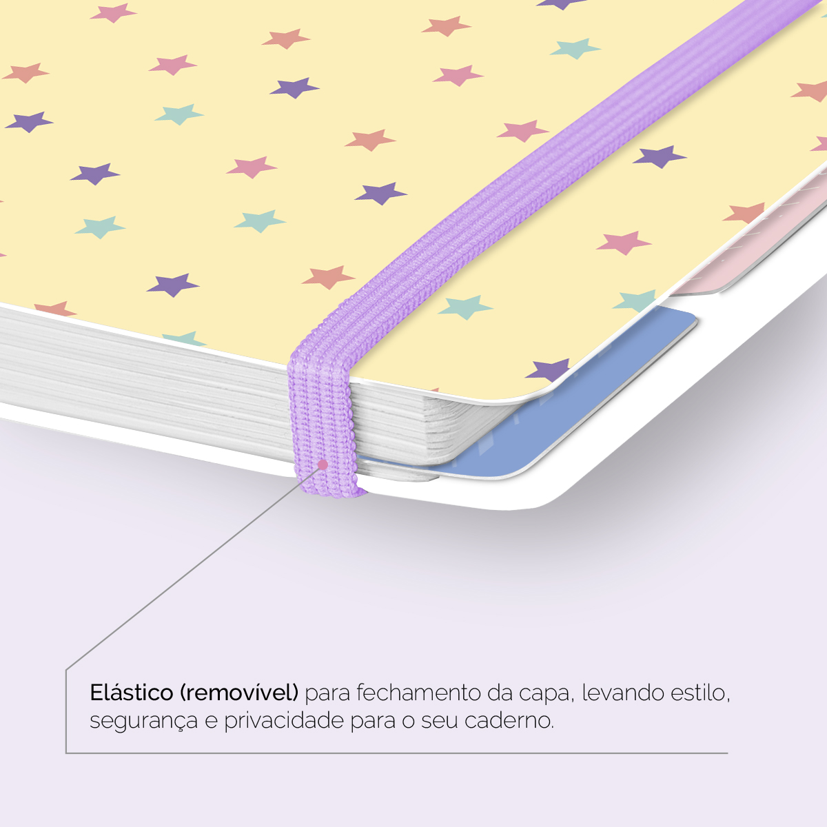 O miolo conta com 60 folhas pautadas decoradas em papel sulfite 90g, (aquele papel mais “grossinho”) para que você use e abuse das suas canetas especiais e 20 folhas em branco, ideais para explorar seu lado mais criativo.