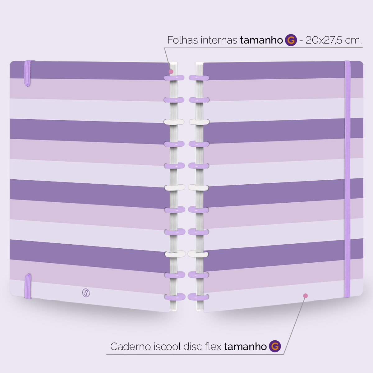 Além de tudo isso, o ISCOOL DISC FLEX, conta com detalhezinhos que fazem toda diferença: elástico removível para fechamento da capa, muito mais estilo e privacidade para suas anotações; bolsa plástica para guardar seus rascunhos, referências, lembretes, documentos e uma cartela de adesivos incríveis, para que você possa personalizar seu caderno do seu jeitinho!